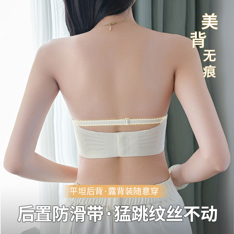 菇娘家稳稳杯无肩带内衣女大胸美背抹胸裹胸隐形无痕聚拢防滑文胸