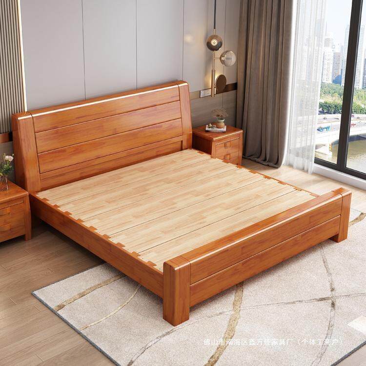 中式实木床双人床1.2米1.5米经济型简约主卧室储物租房现代家具