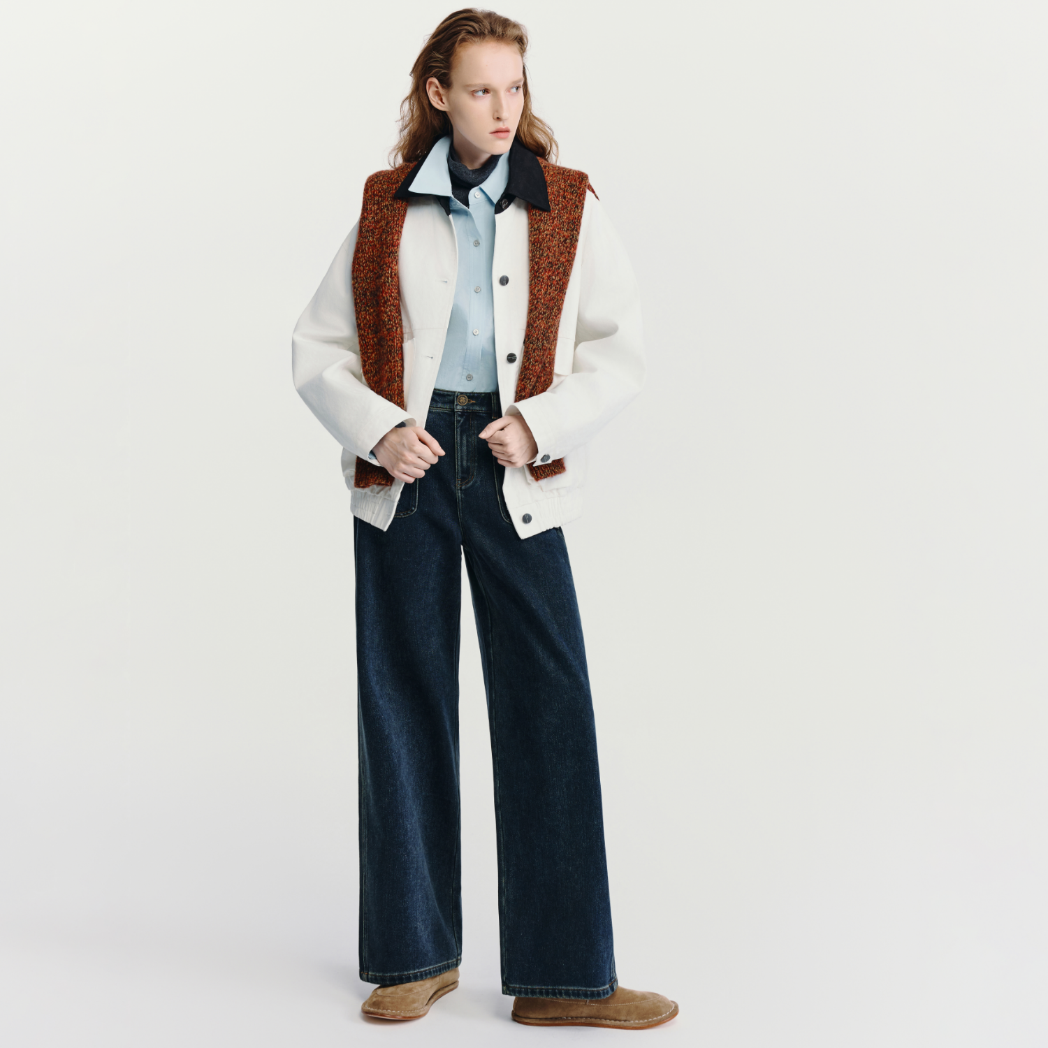 森柔牛仔|森马阔腿牛仔裤女2025秋冬白色牛仔裤简约女士高腰裤子