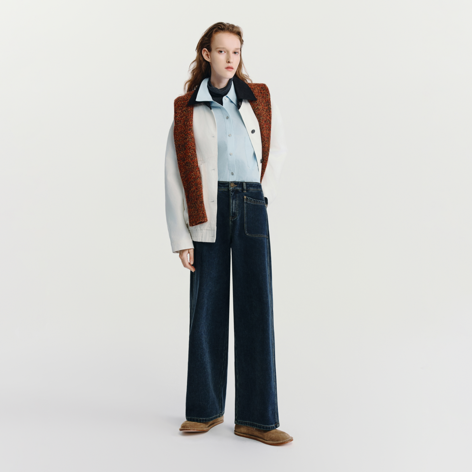 森柔牛仔|商场同款森马牛仔裤女翻边长裤2025秋季新款宽松阔腿裤