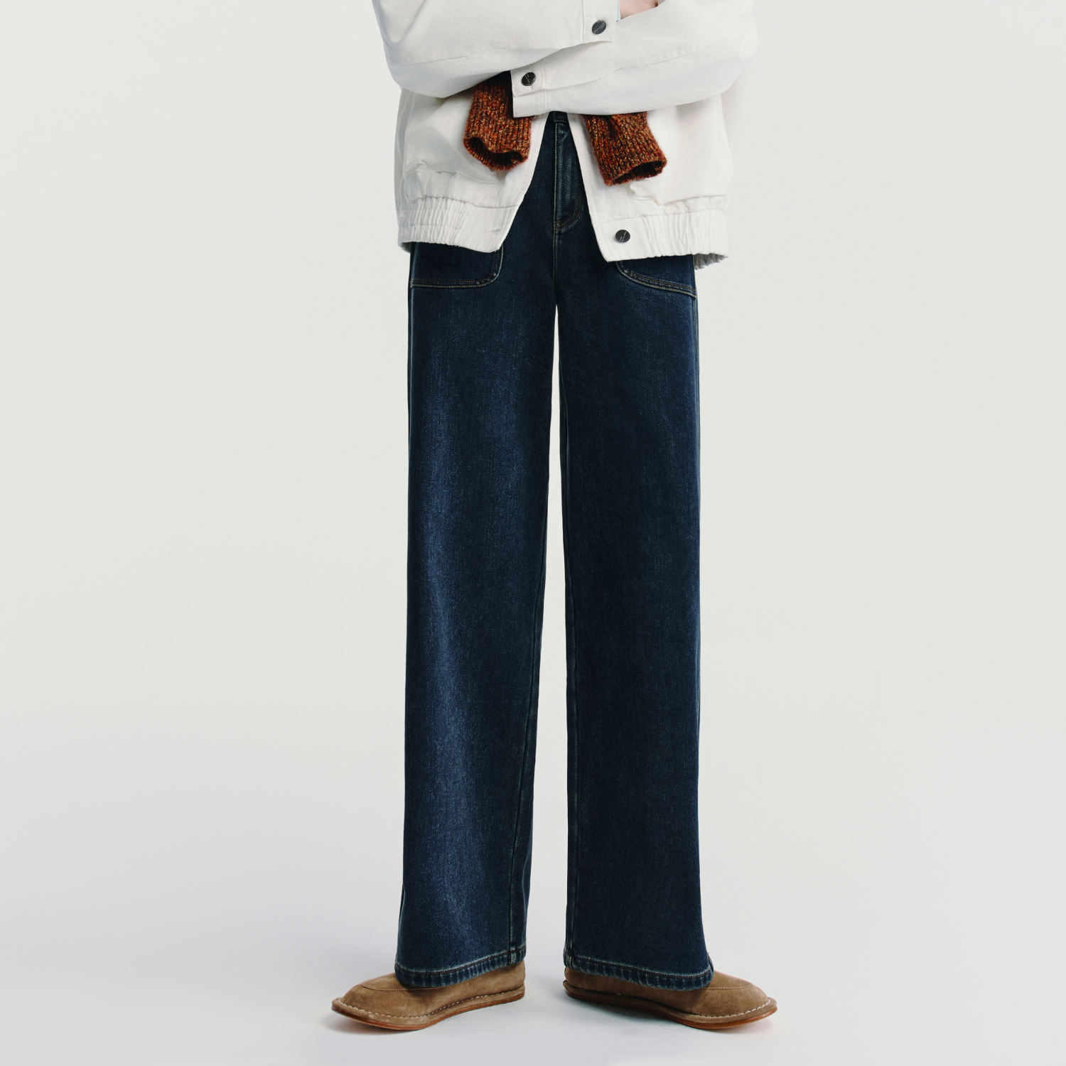 王家有鱼秋冬新款加绒阔腿裤2025百搭修身显瘦宽松直筒牛仔裤子女