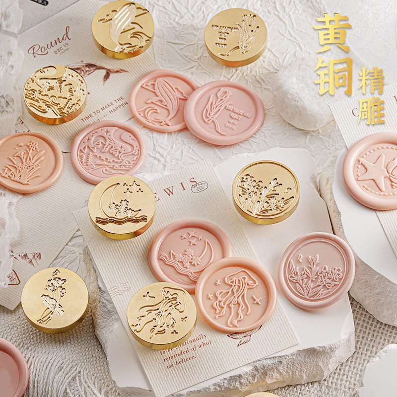 火漆印章方形古风宇宙星球水母黄铜精雕学生DIY装饰