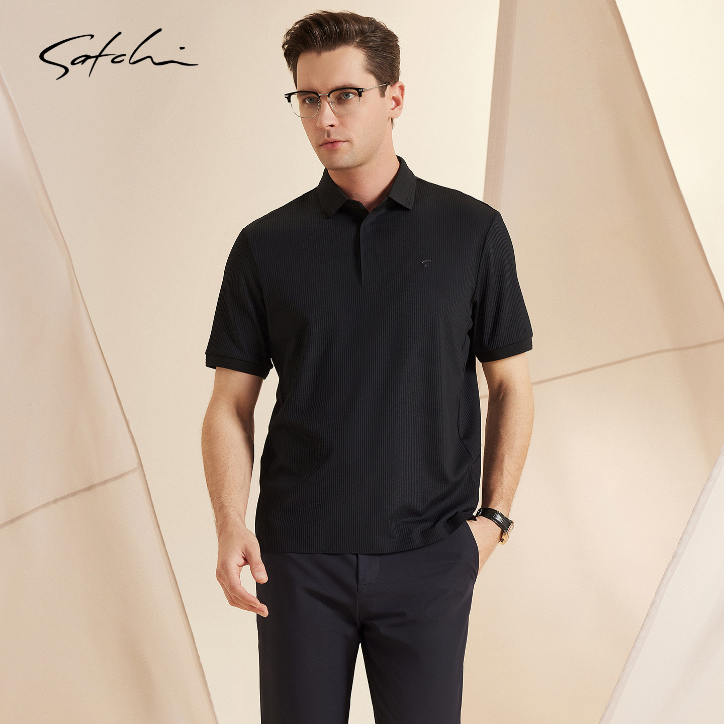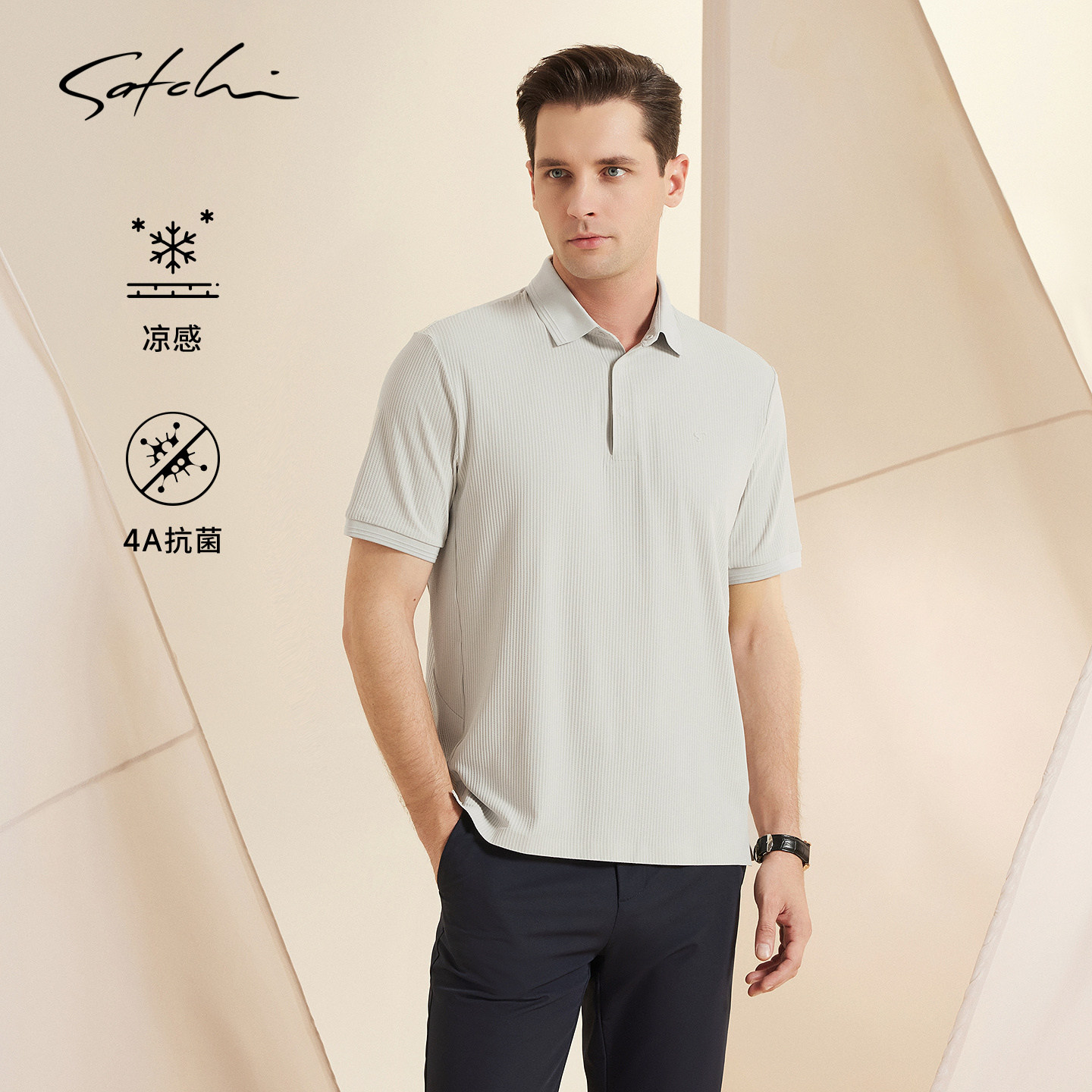 [藤编水波条纹]SATCHI沙驰男装男士短袖POLO衫春季新款凉感T恤