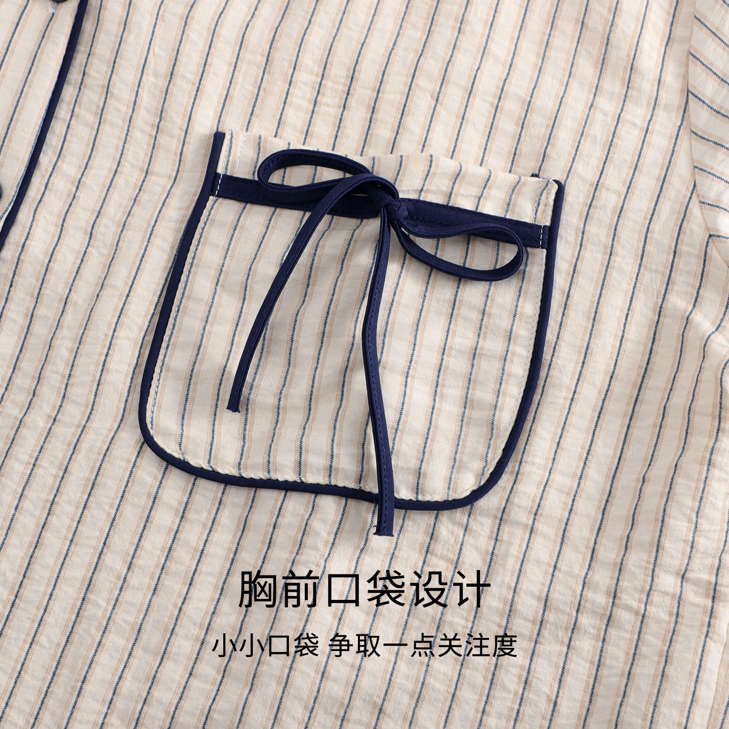 末里末【法风纹居】春夏翻领开衫蝴蝶结睡衣2026新款条纹家居服女