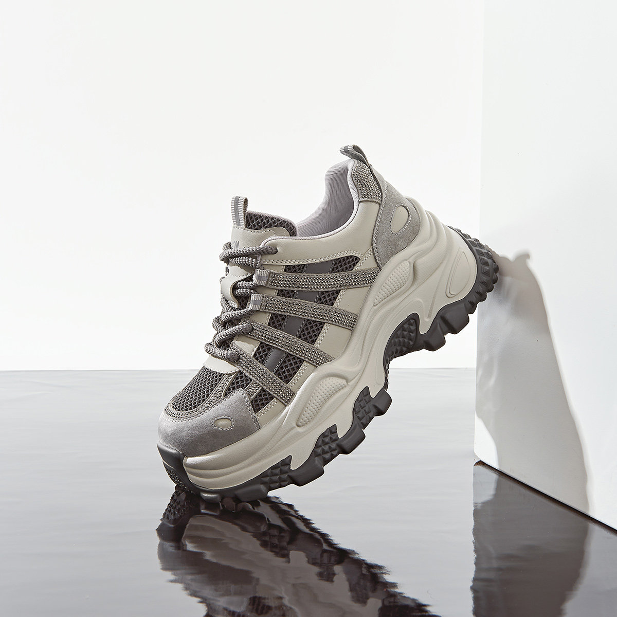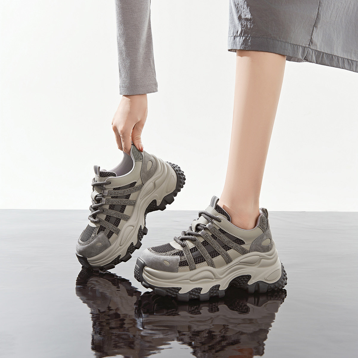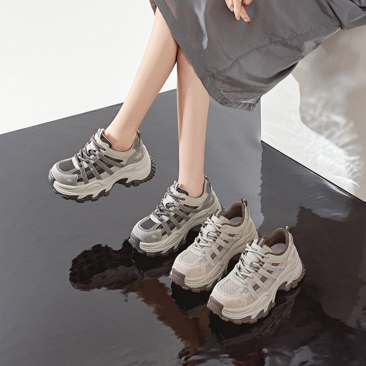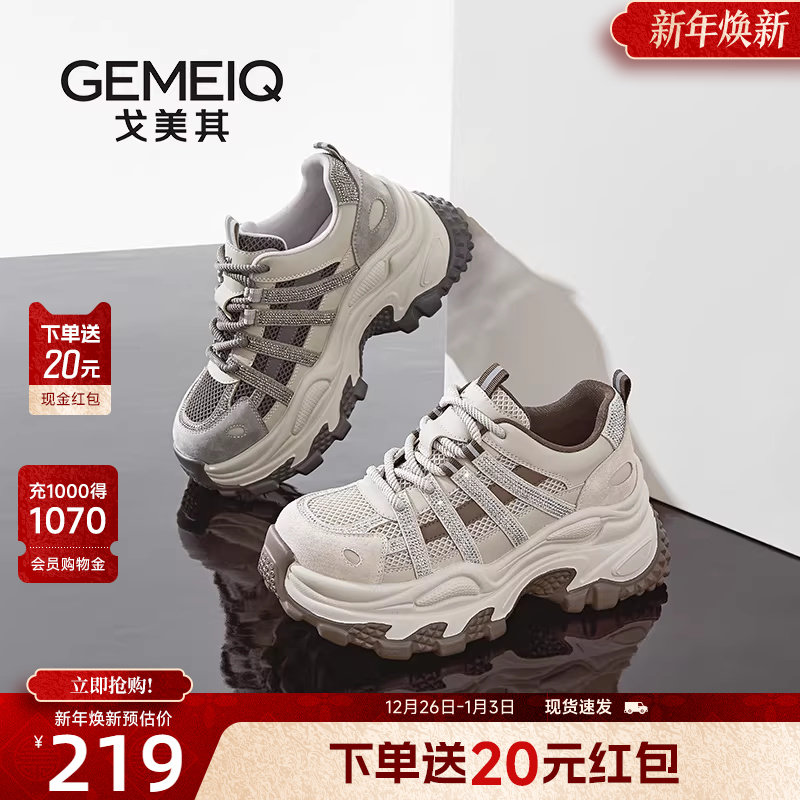 戈美其商场同款老爹鞋女款2025新款小个子增高7CM厚底松糕运动鞋