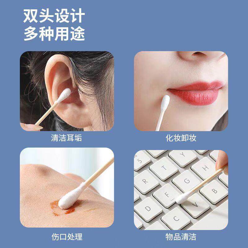双头盒装棉签棉花棒家用化妆棉签掏耳朵无菌木棒消毒清洁棉棒卸妆