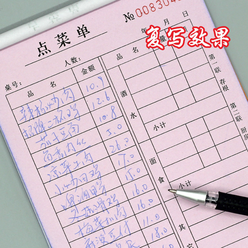 点菜单无碳复写一联二联三联酒店大号菜单本饭店餐饮烧烤收据票本