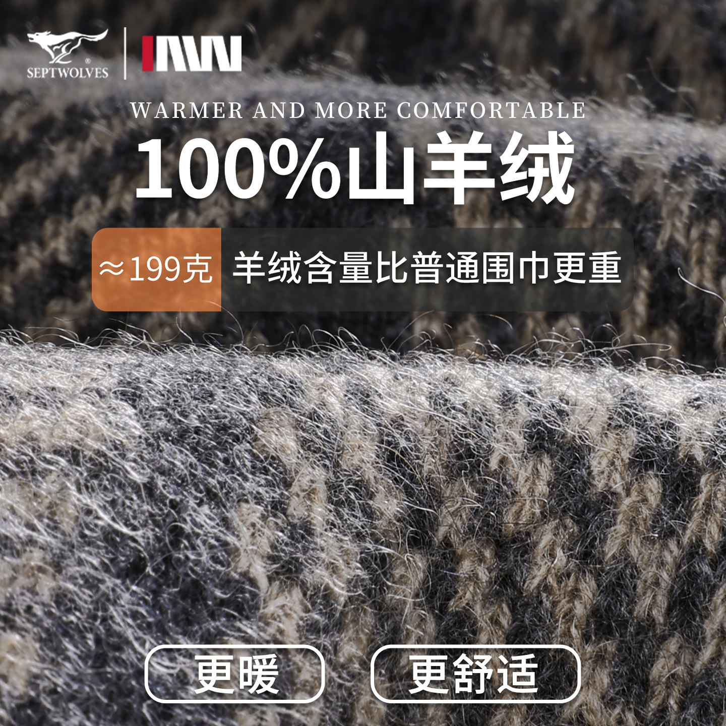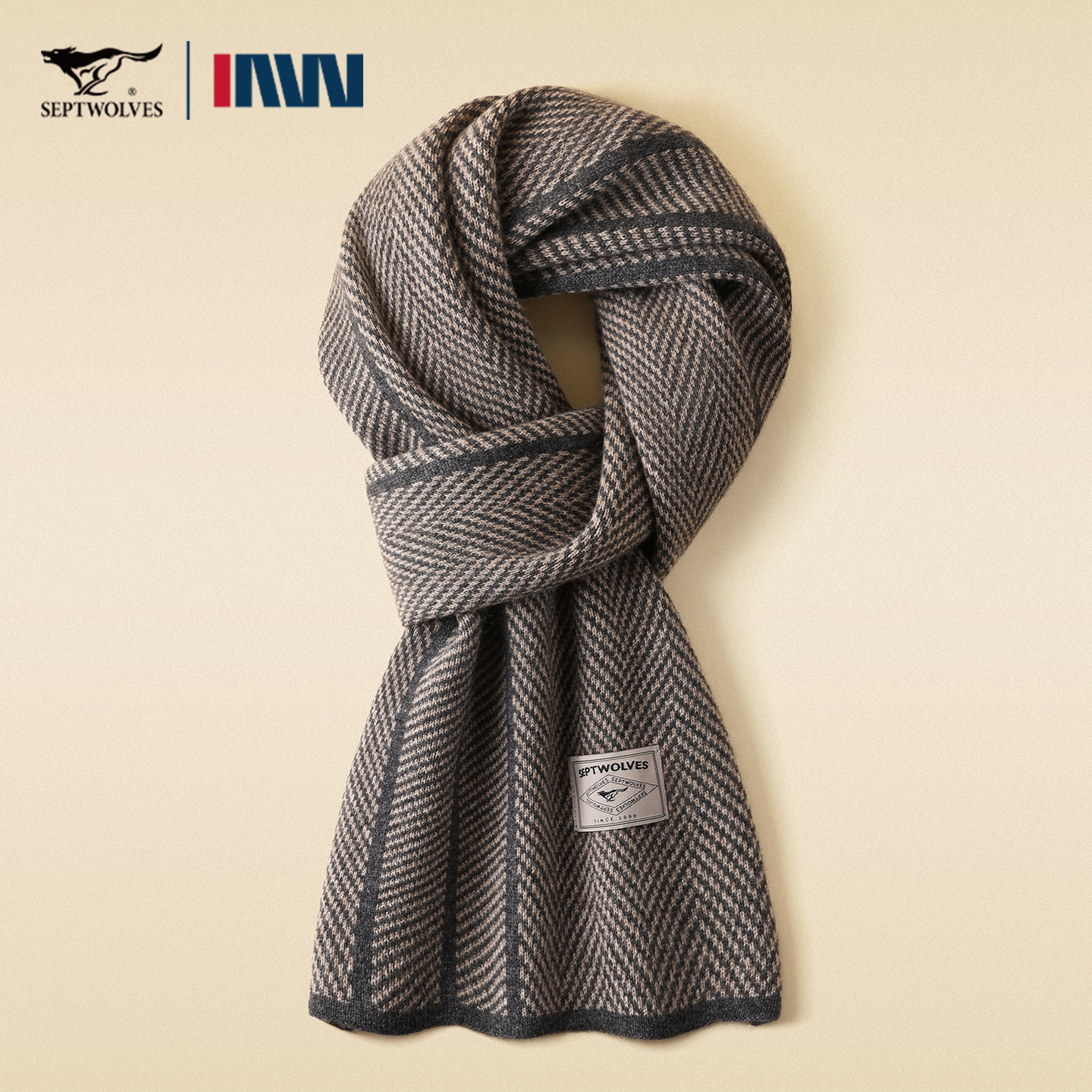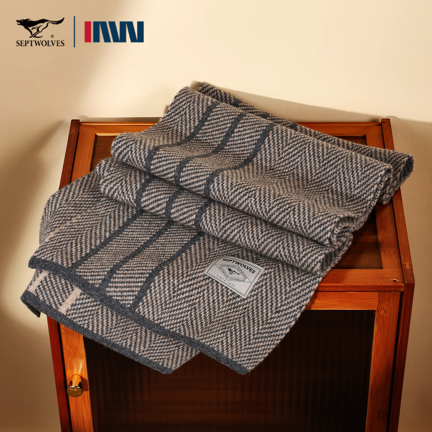 七匹狼100%纯山羊绒针织围巾男时尚潮流保暖加厚围脖高级感礼盒装
