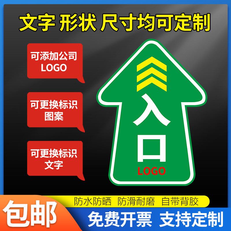 出入口标志牌进出口出口磨砂贴纸耐磨地贴广告提示牌上下班出入口闸机通道标识贴禁止警示通道箭头支持定制