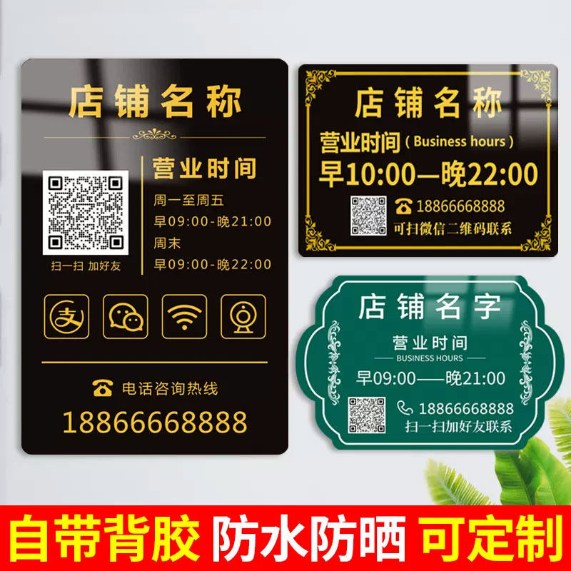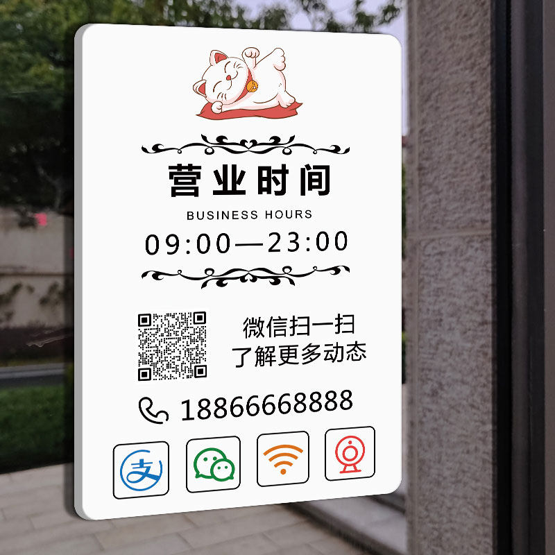 营业时间告示牌玻璃贴纸挂牌上班时间提示牌店门口装饰指示牌店铺标识牌招牌亚克力广告牌展示牌贴纸门牌定制