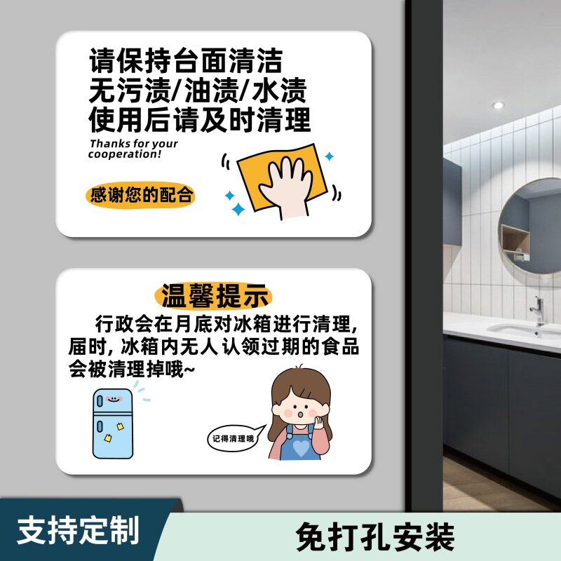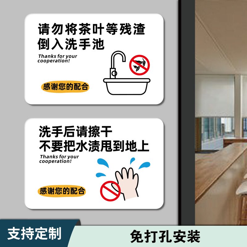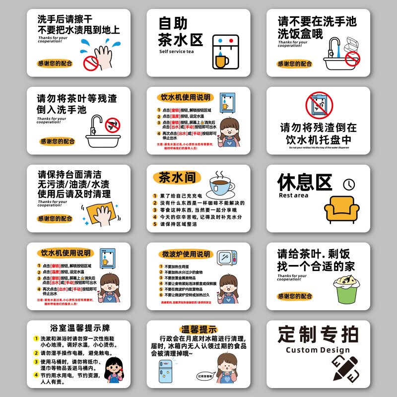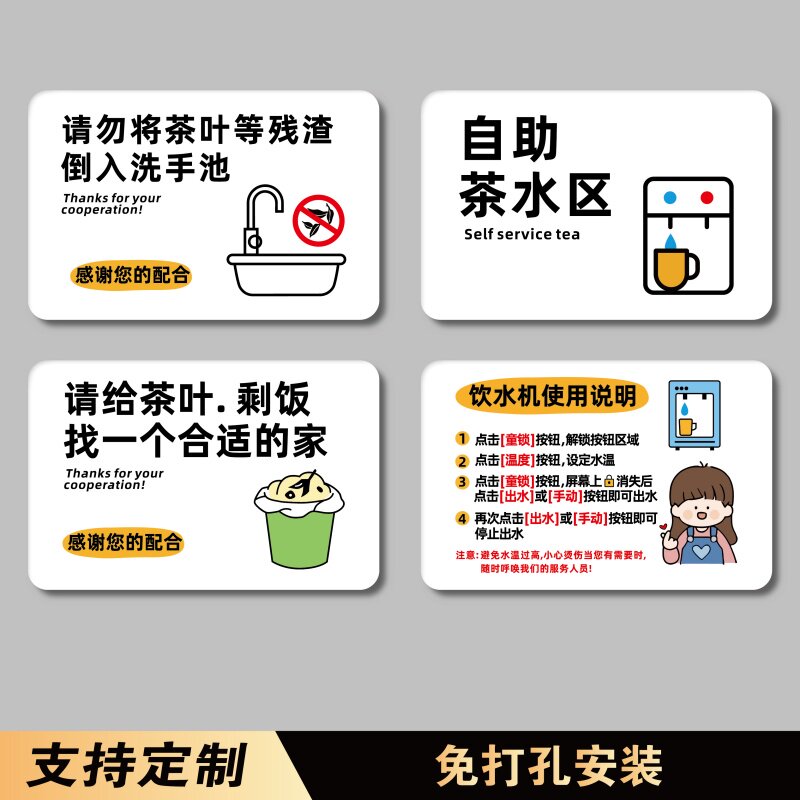 茶水间茶叶残渣剩饭请勿倒入洗手池温馨提示贴保持台面清洁标识牌自助茶水区饮水机微波炉使用说明指示牌贴