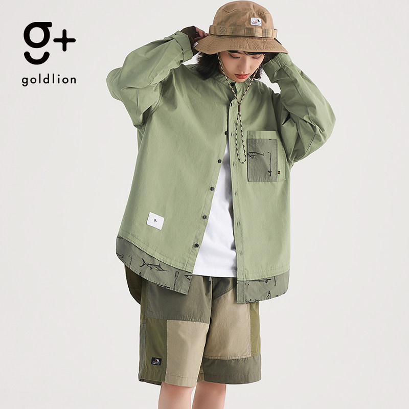 金利来g+潮牌ins港风工装男士撞色简约个性长袖衬衫