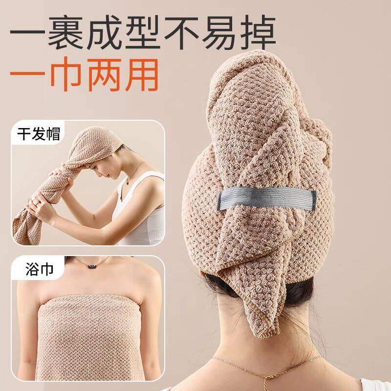 高密珊瑚绒包头巾菠萝格干发帽速干超强吸水浴帽干发帽加长大毛巾