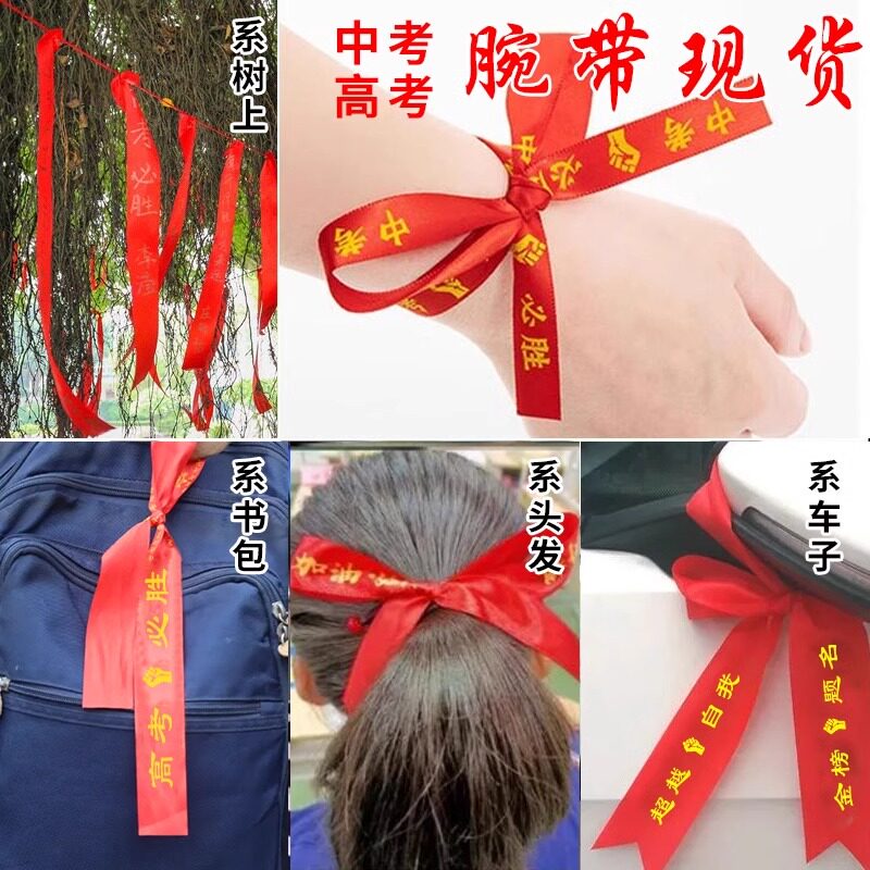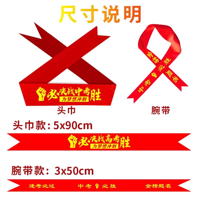 中考高考加油必胜头带百日誓师手腕带学生运动会道具班级布置手举牌加油励志红丝带金榜题名头巾
