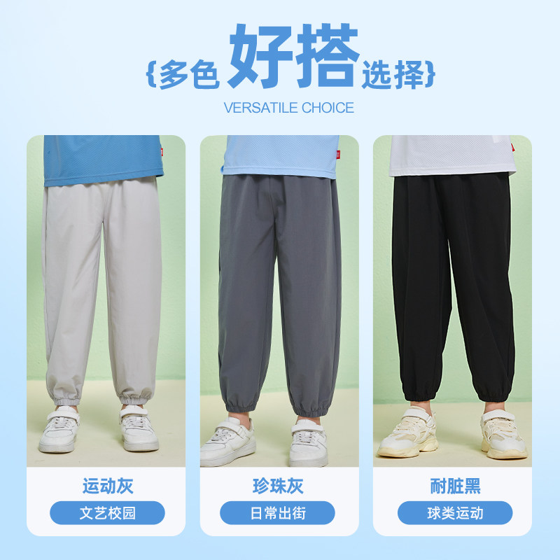 巴布豆男童夏装裤子2025新款潮洋气中大童防蚊裤儿童速干裤运动裤