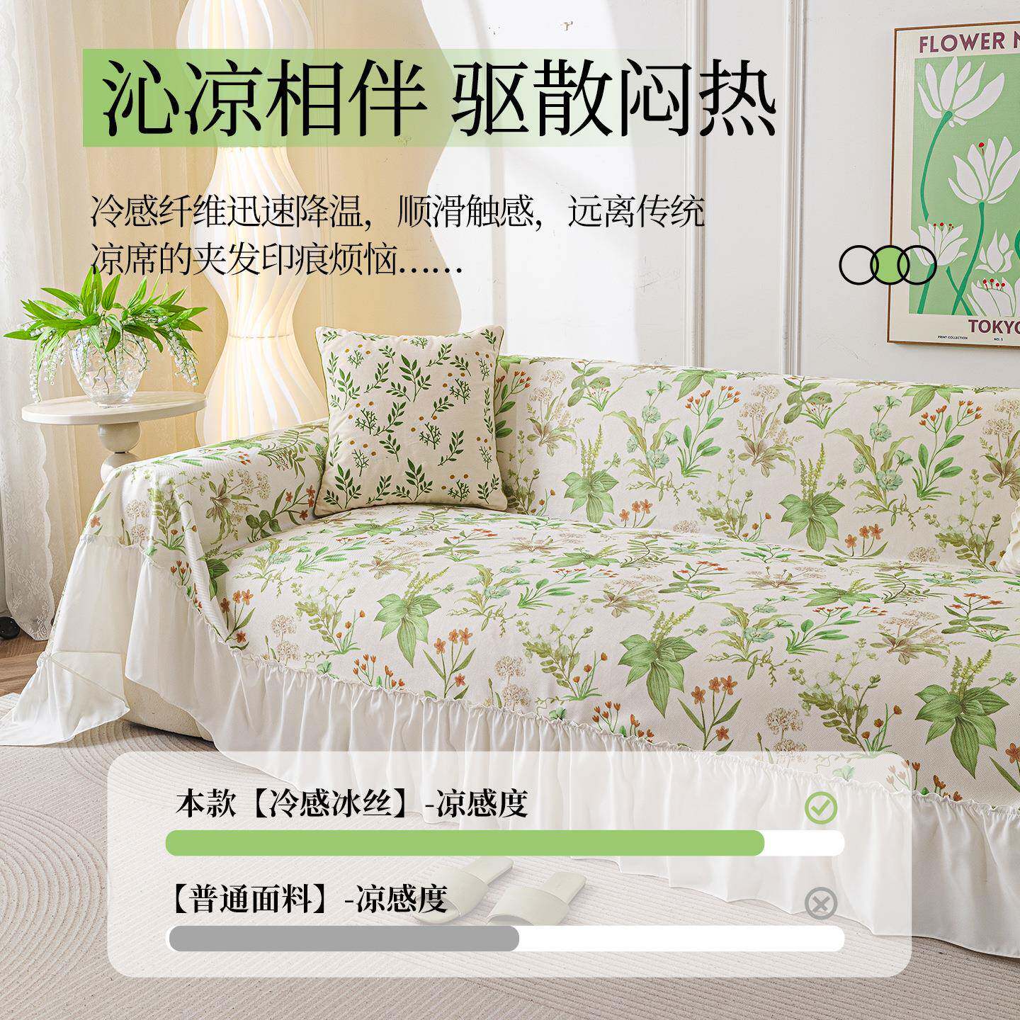 法式小清新小碎花沙发巾2026新款夏季新款冰丝防滑凉感一片式盖巾