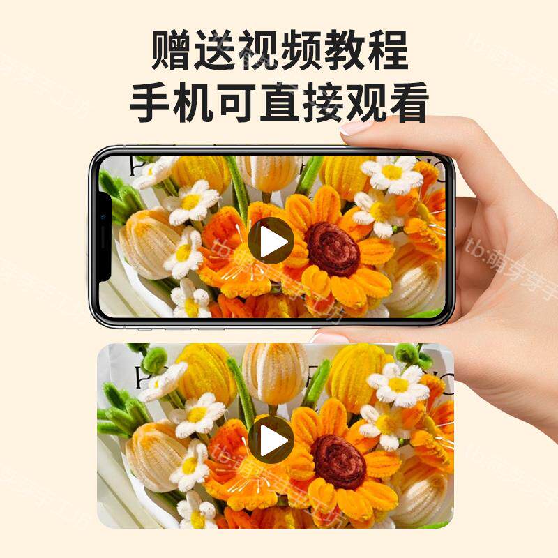 超密加密毛根扭扭棒不掉毛花束花朵手工diy材料包艺术创意马卡龙
