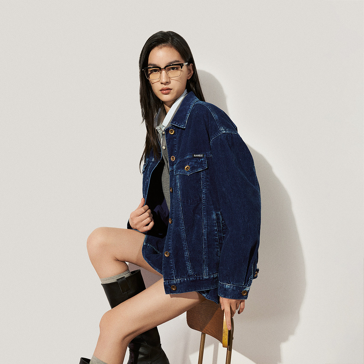 【季末折扣】欧时力100%棉灯芯绒外套上衣宽松设计感2025秋冬新品