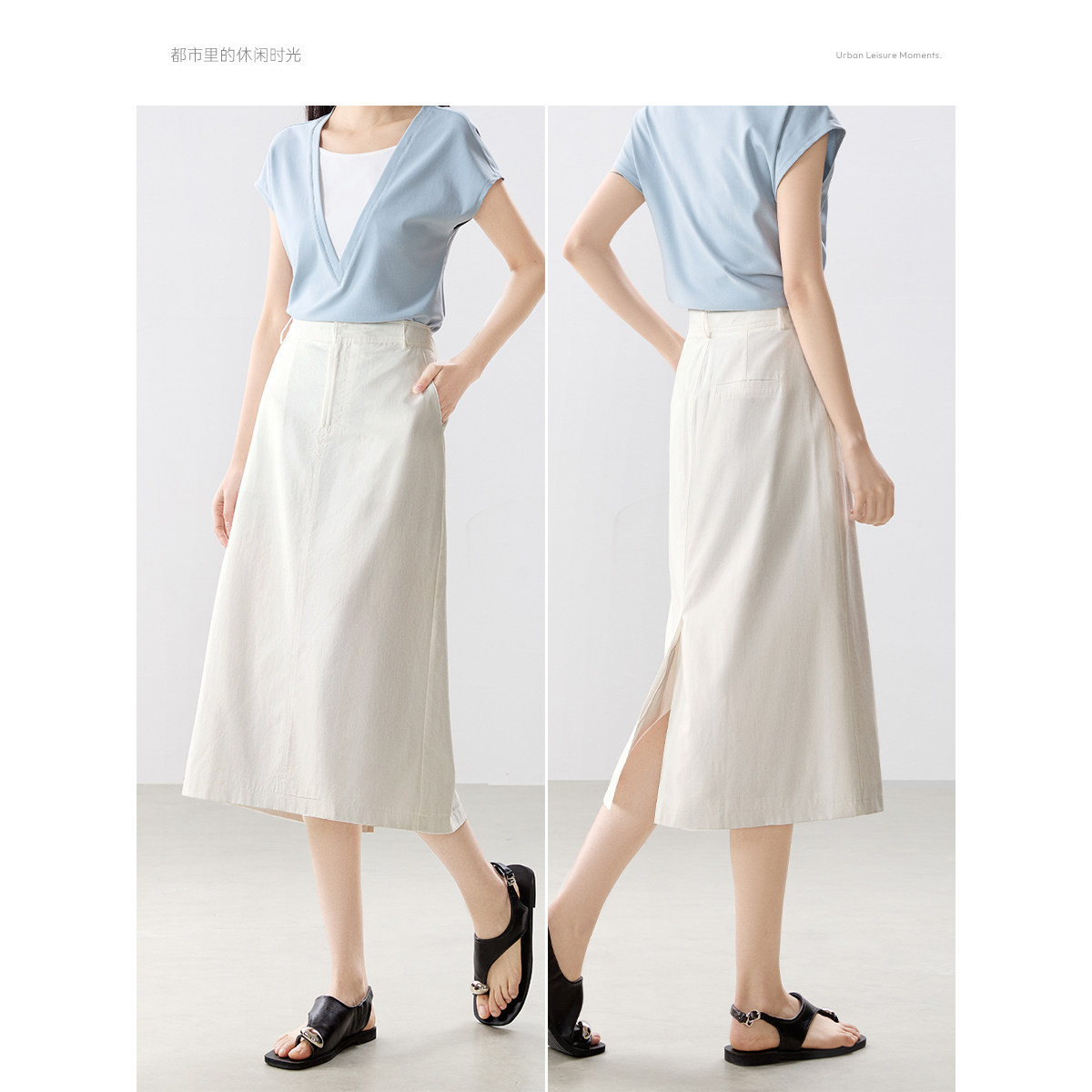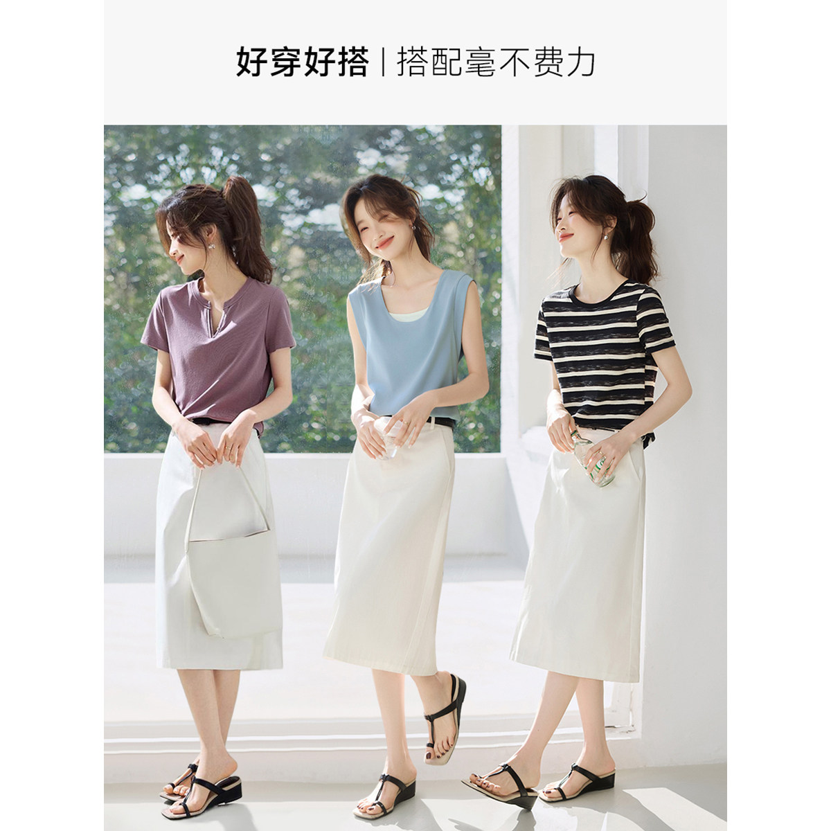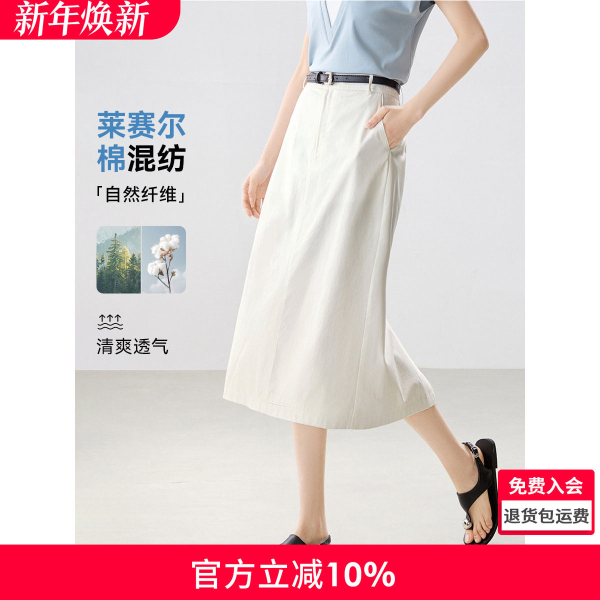 沫晗依美莱赛尔棉半裙2025年夏季古典怀旧高腰直筒过膝显瘦半身裙