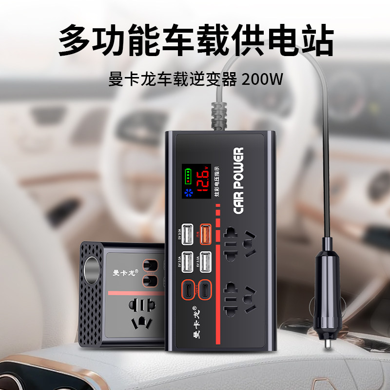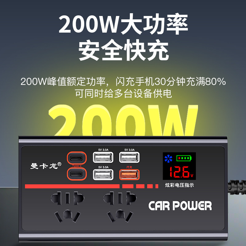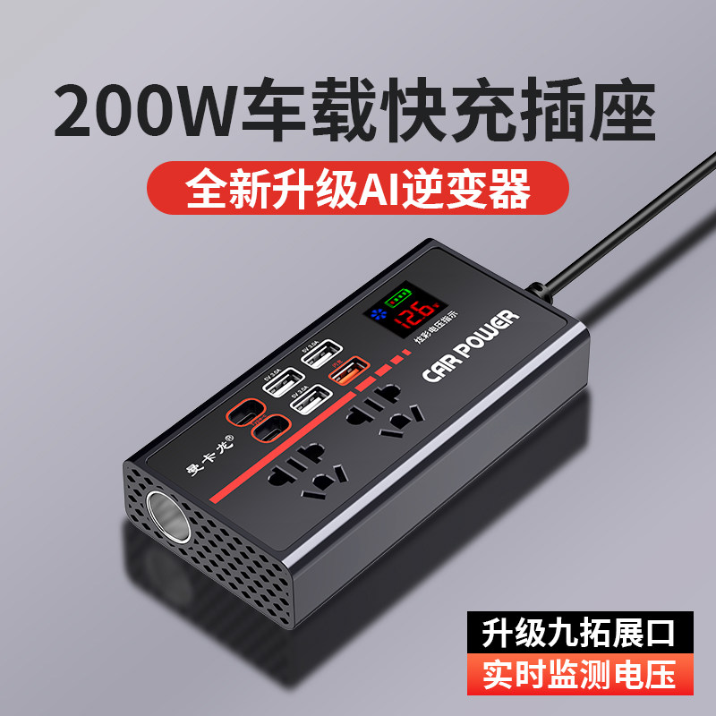 车载充电器200w逆变器12V24V转220V汽车转换器多功能点烟器插座