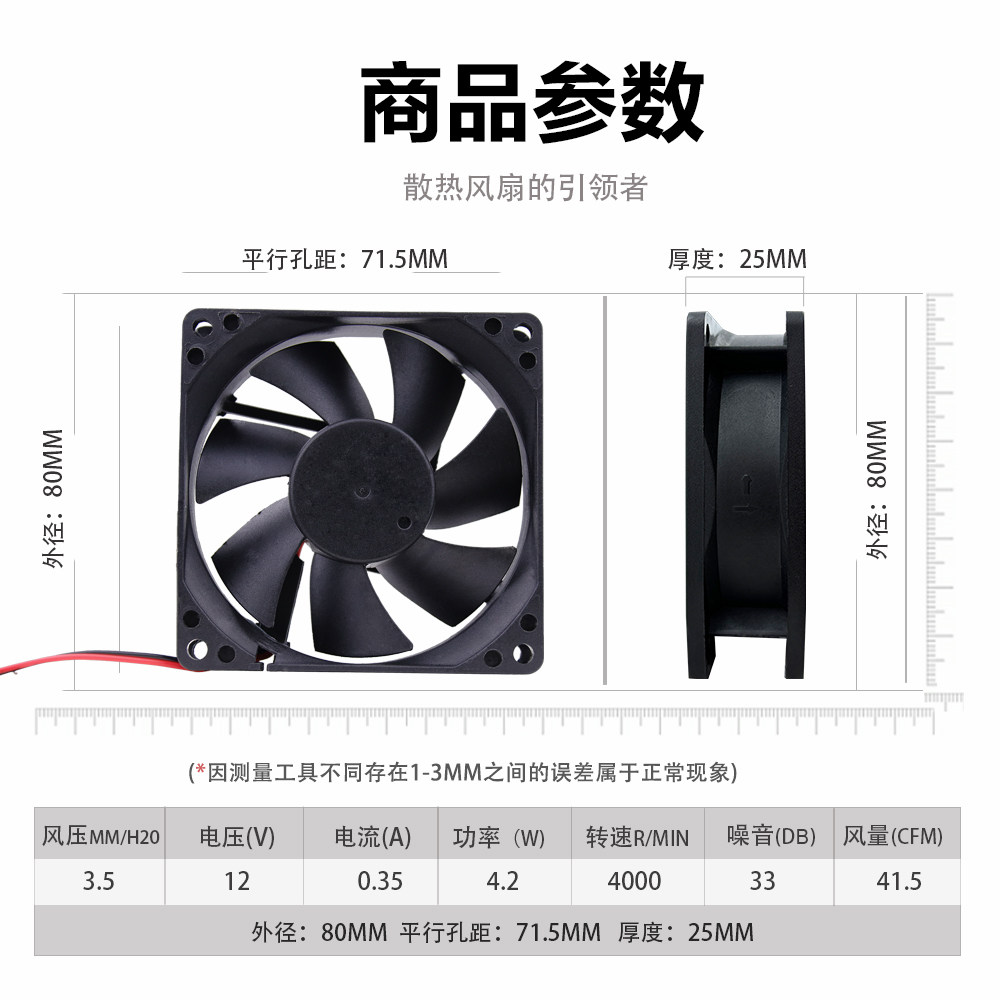 全新8025 5v/12v/24v 散热风扇逆变器 8厘米电脑电源机箱功放风扇
