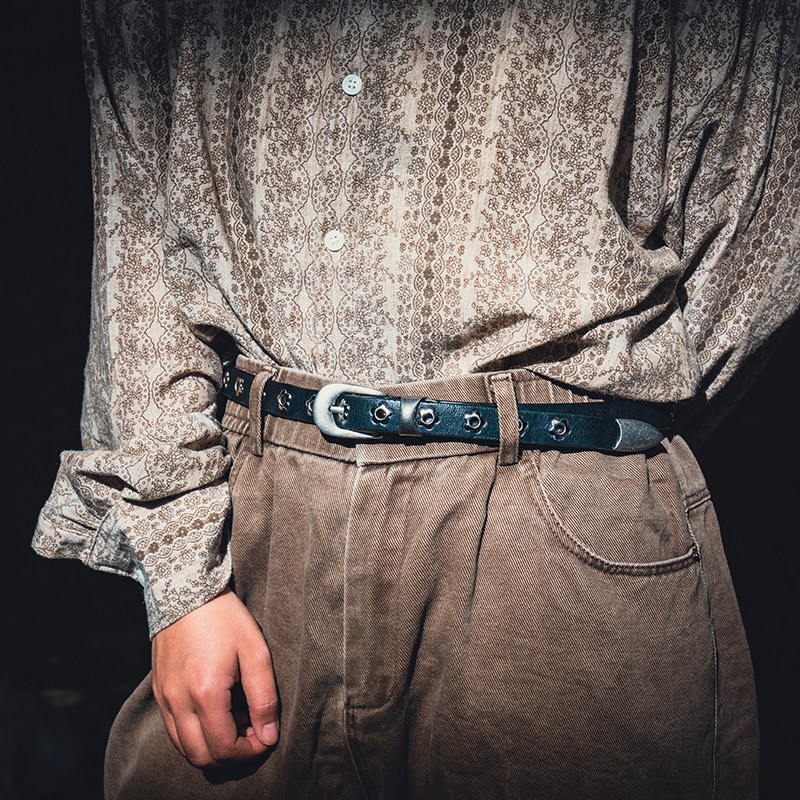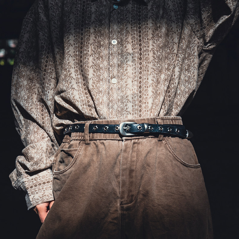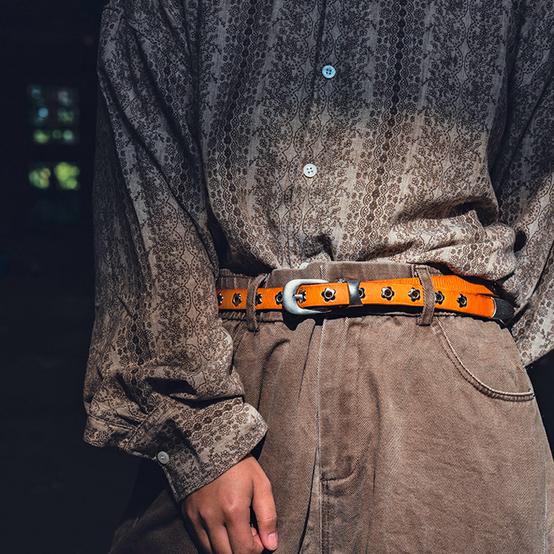 头层牛皮金属花朵多免打孔腰带休闲个性小众设计纯牛皮真皮带男女