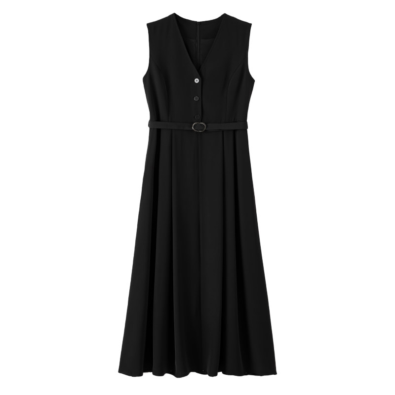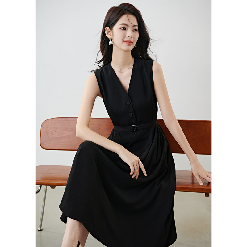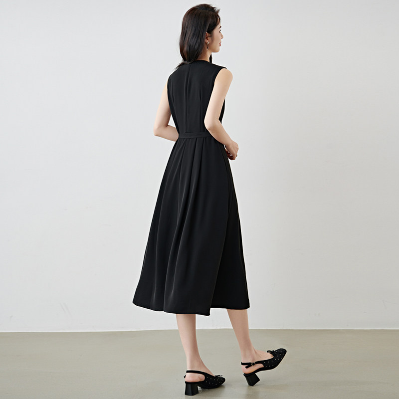QY2 2026年春夏新款女装黑色无袖简约风格宽松版型连衣裙