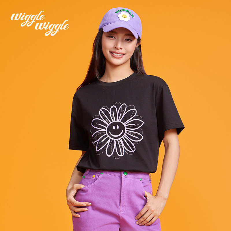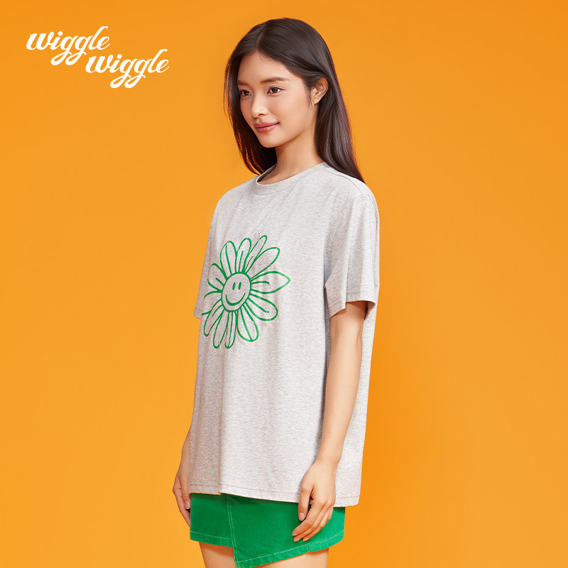wigglewiggle26年时尚潮流韩款笑脸印花凉感圆领宽松短袖T恤女装
