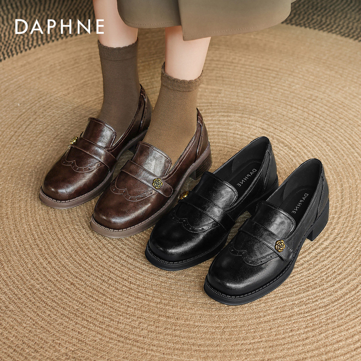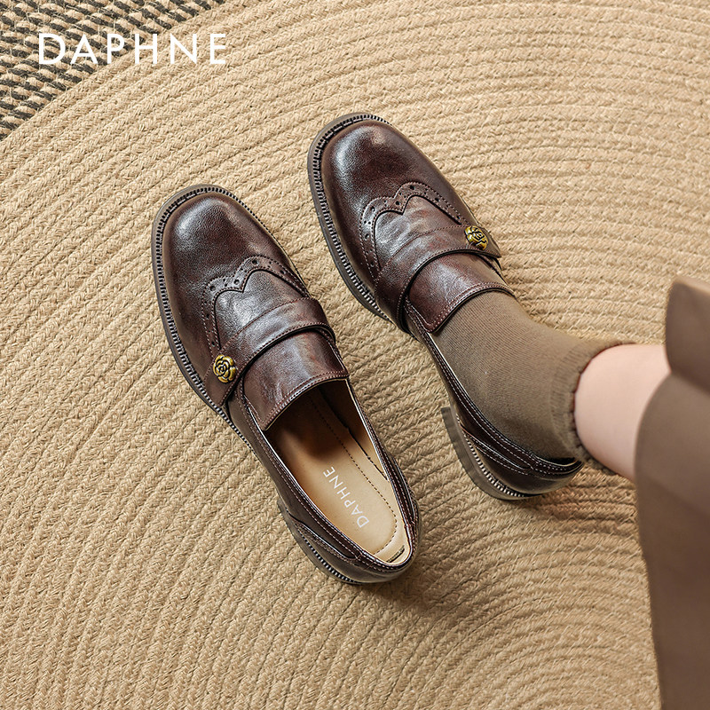 达芙妮乐福鞋女鞋2025秋季新款外穿通勤高级感英伦风布洛克小皮鞋