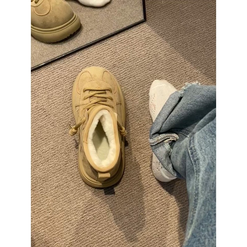 miu家厚底雪地靴女冬季真皮短靴羊毛侧拉链增高厚底加绒毛毛棉鞋