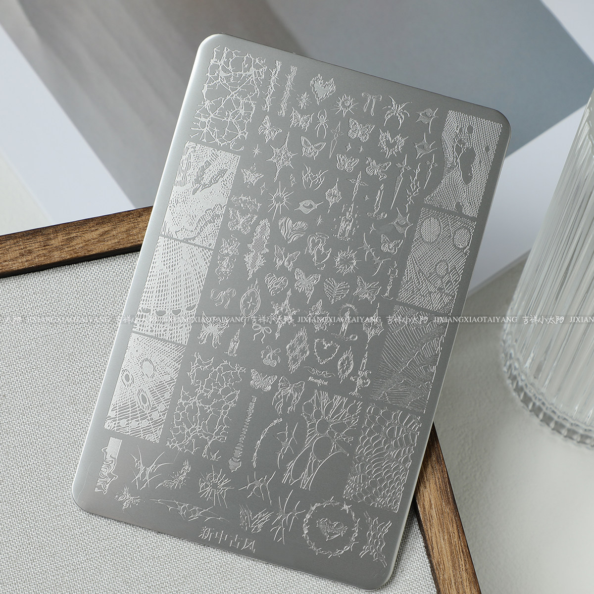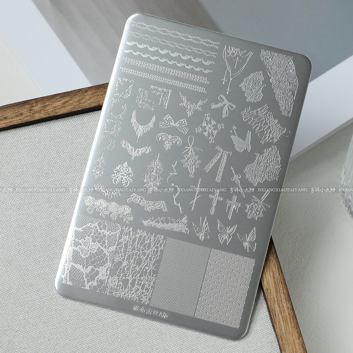 美甲印花钢板蝴蝶结蕾丝转印蝴蝶模板法式印章工具格纹花纹圣诞