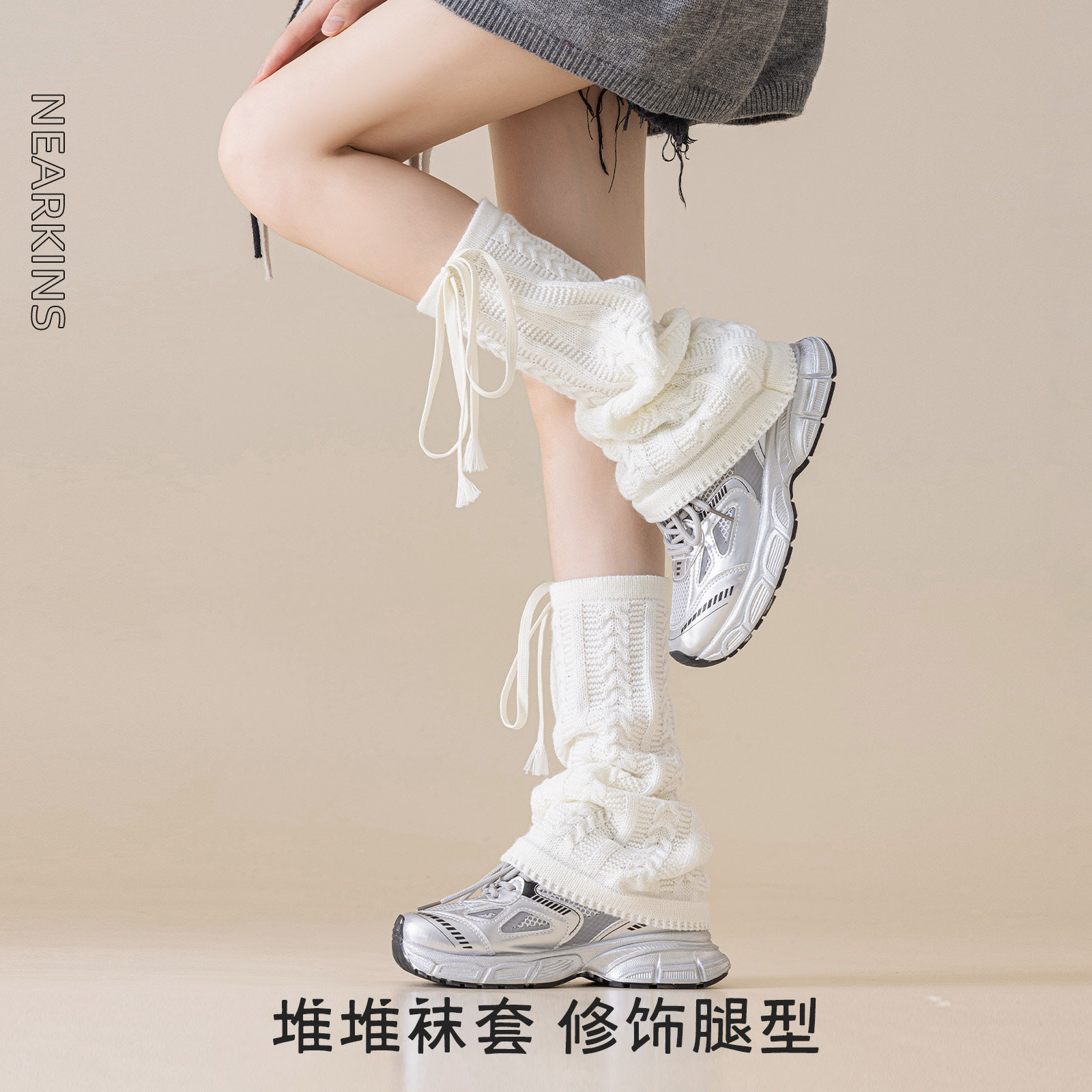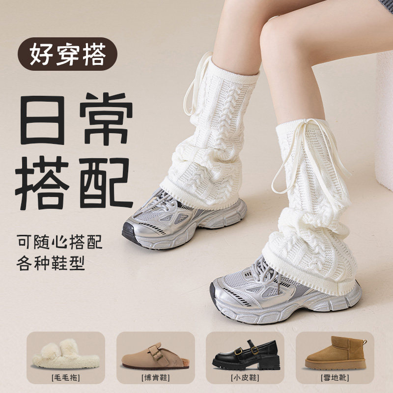 Y2k穿搭针织灰色腿套堆堆袜女款大码胖mm粗腿袜套小腿袜中筒长筒