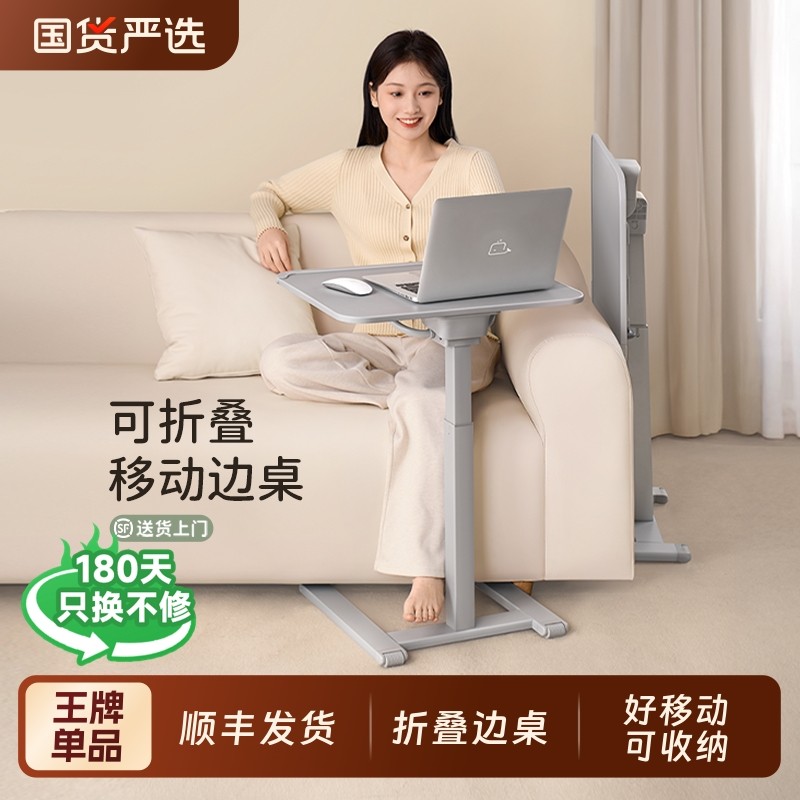 【顺丰】赛鲸F1折叠餐桌可移动升降电脑桌稳固小户型家用单人笔记本工作台沙发边简易书桌边几滑轮床边移动桌