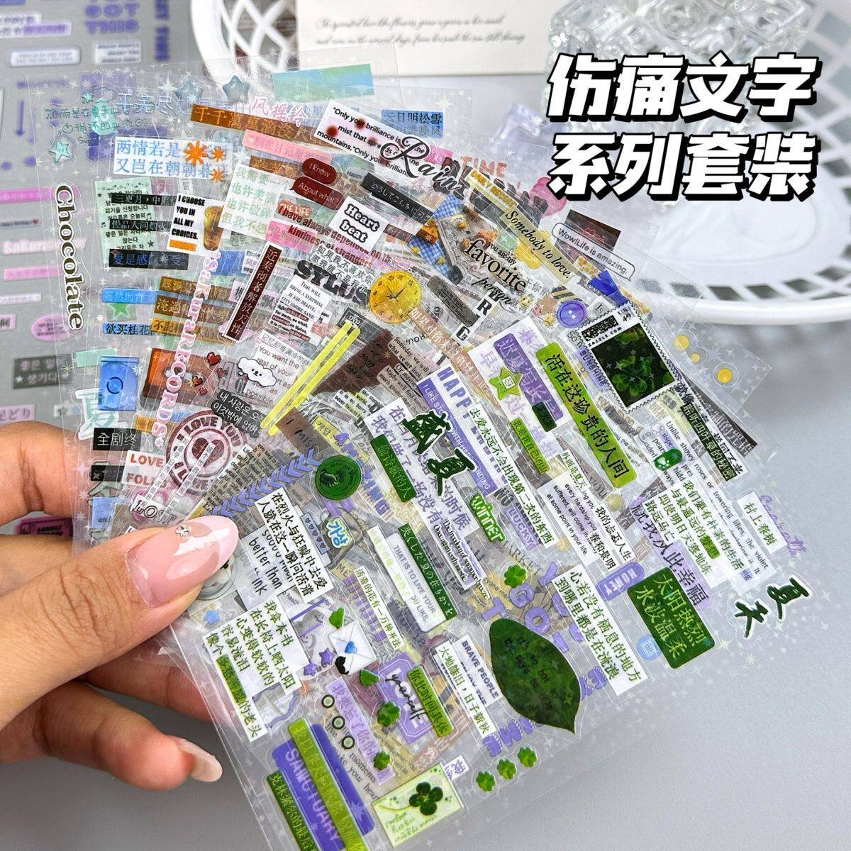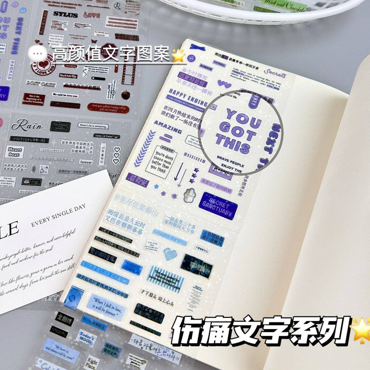 伤痛文字系贴纸人物高颜值手帐手账日记创意装饰素材表情贴画diy