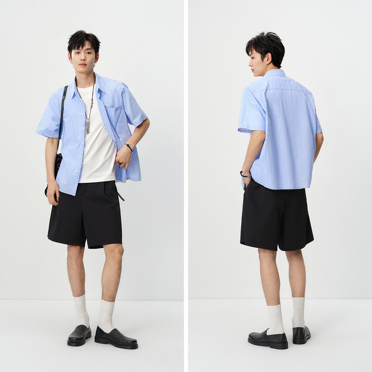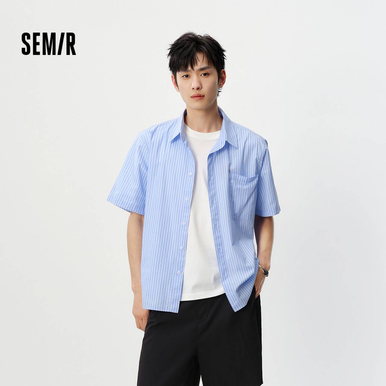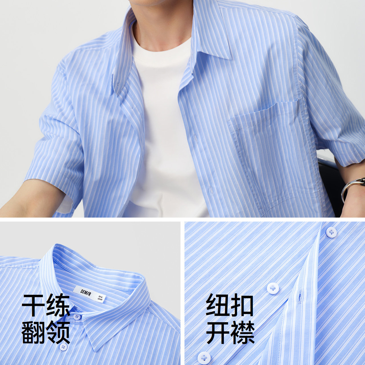 森马短袖衬衫男夏季时尚百搭条纹衬衣2026新款纯棉宽松翻领上衣
