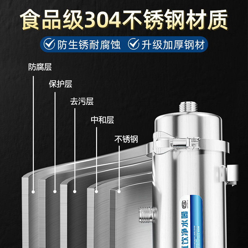 304不锈钢水龙头净水器家用自来水过滤器滤芯式多重净化滤水器