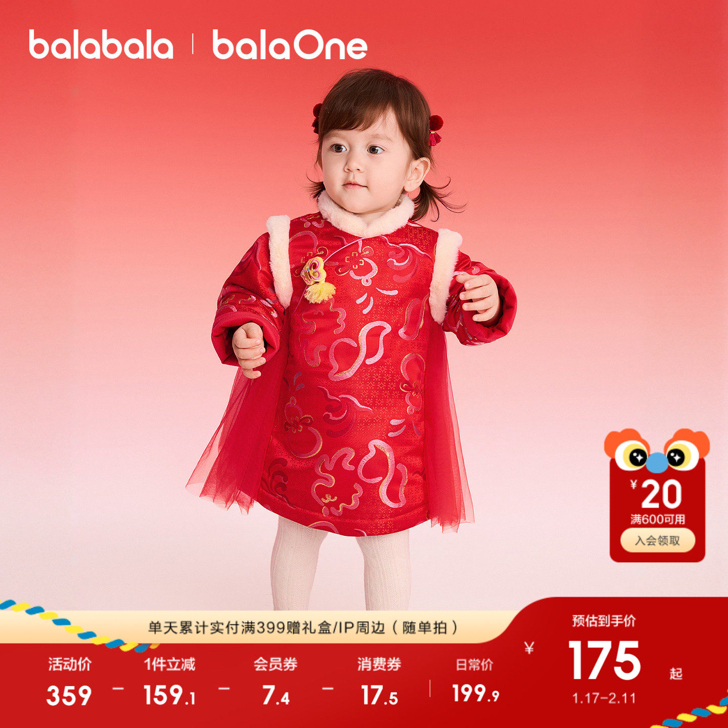 巴拉巴拉女童连衣裙宝宝拜年裙子冬装新款童装儿童红色洋气公主裙