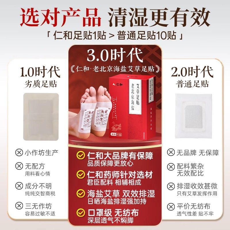 艾草老北京足贴海盐涌泉穴去湿气暖脚神器排体内湿寒驱寒足底穴位