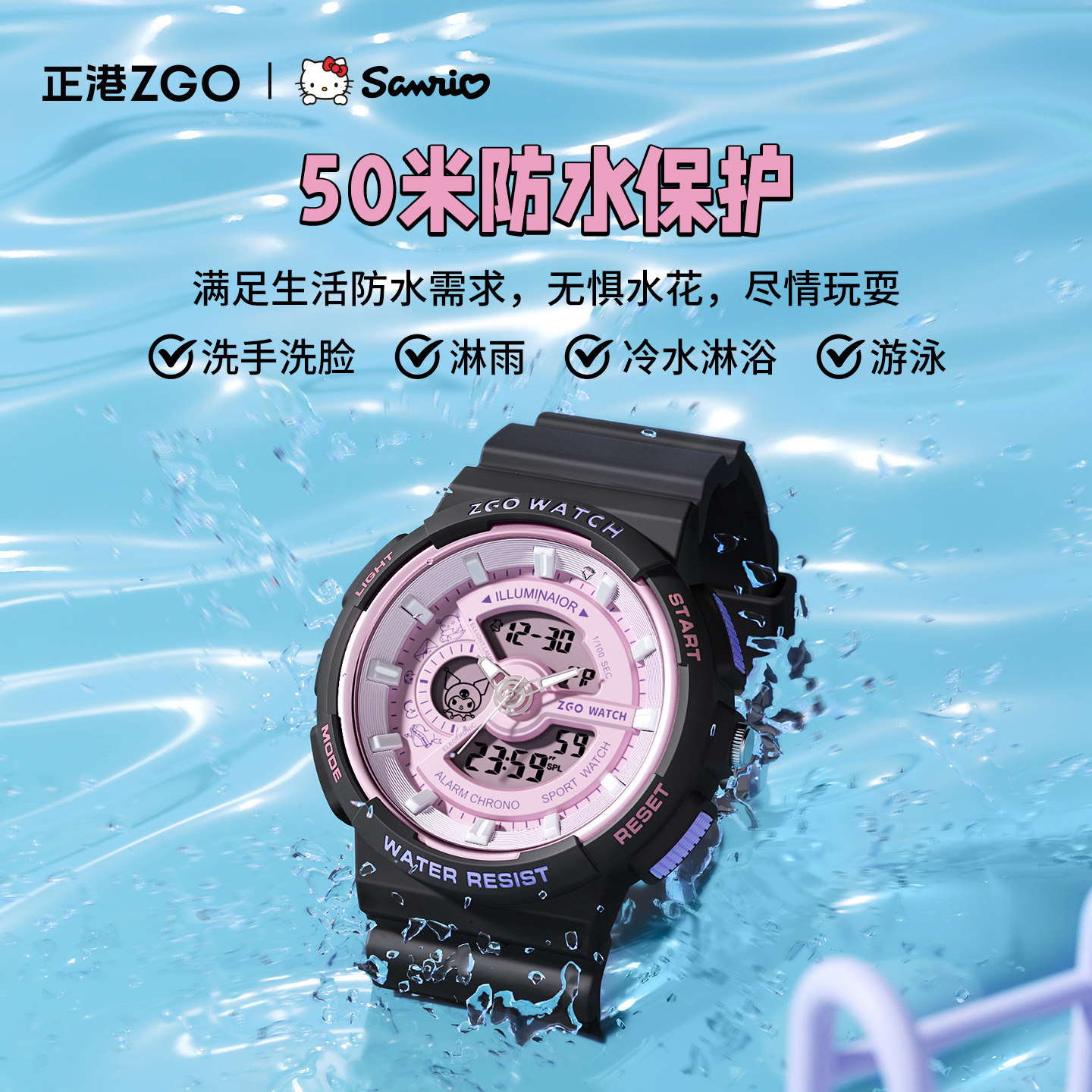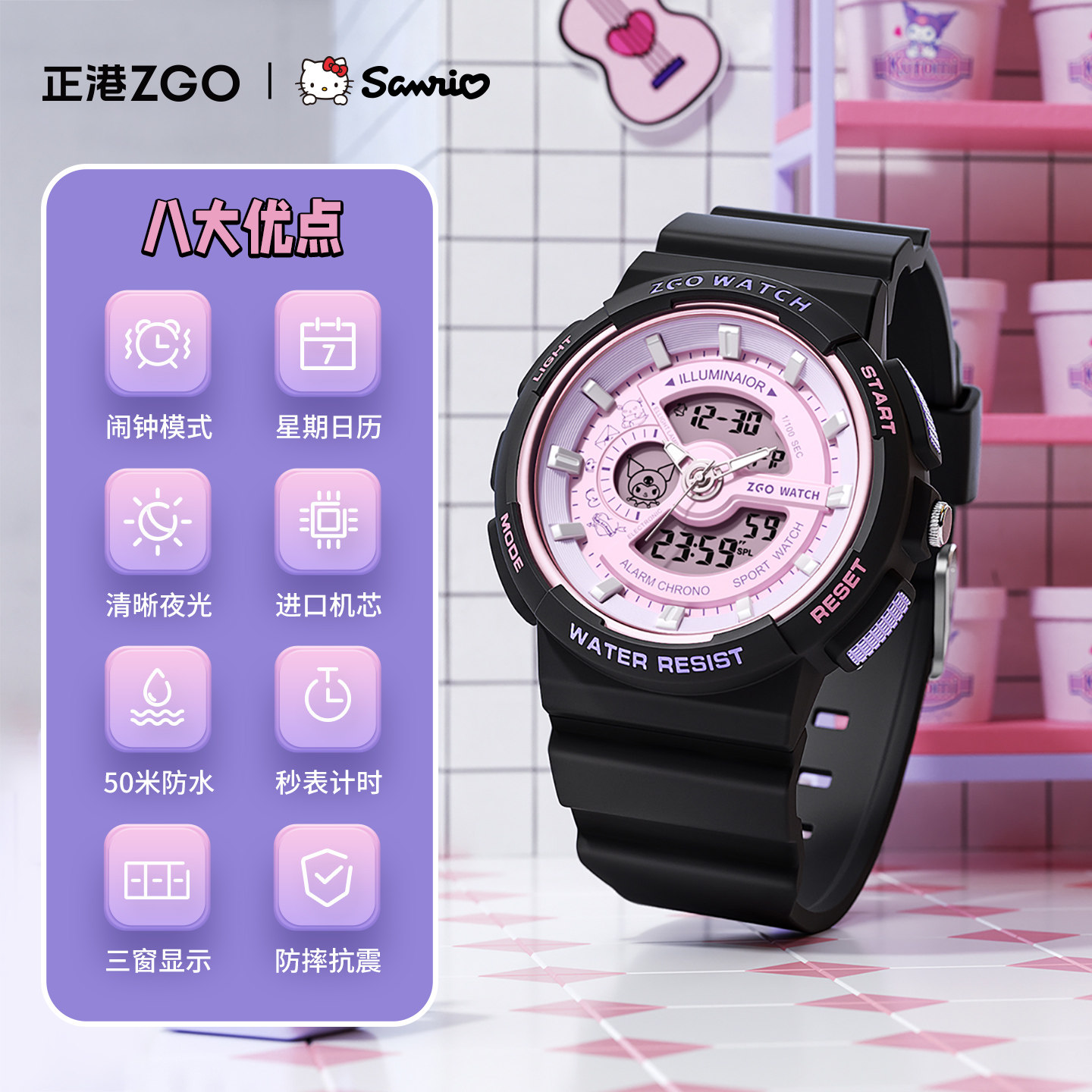 正港ZGOx三丽鸥电子手表女款学生初高中运动防水儿童女孩生日礼物