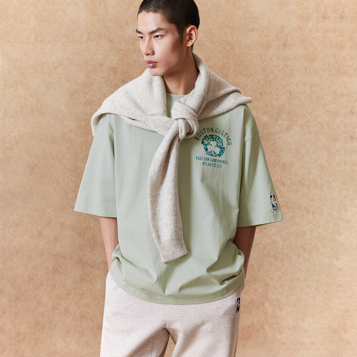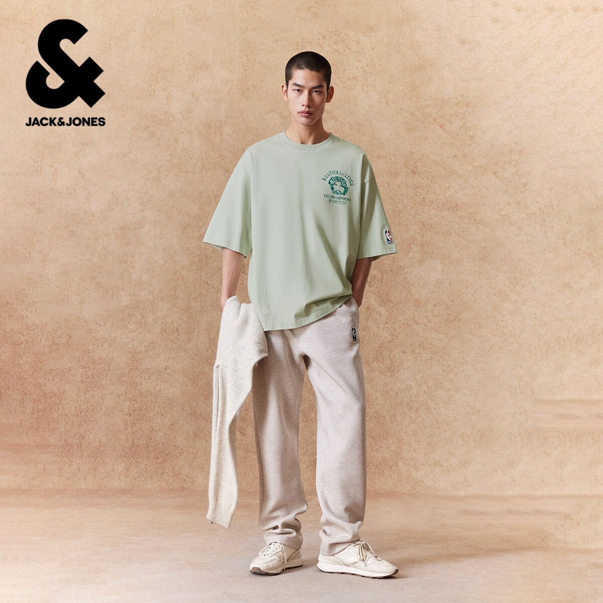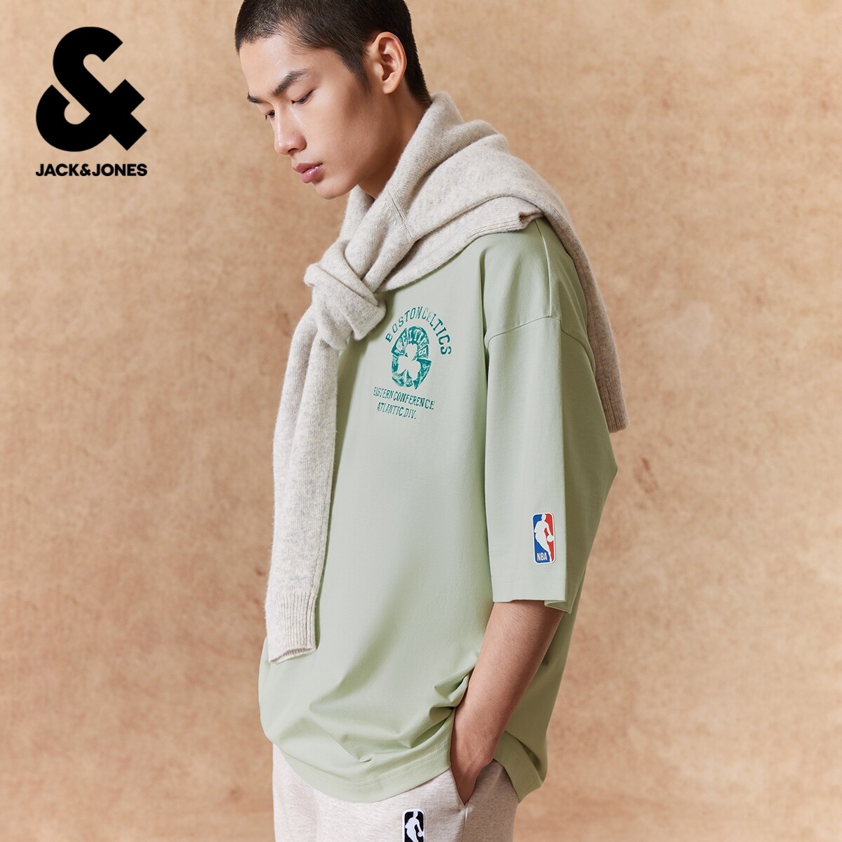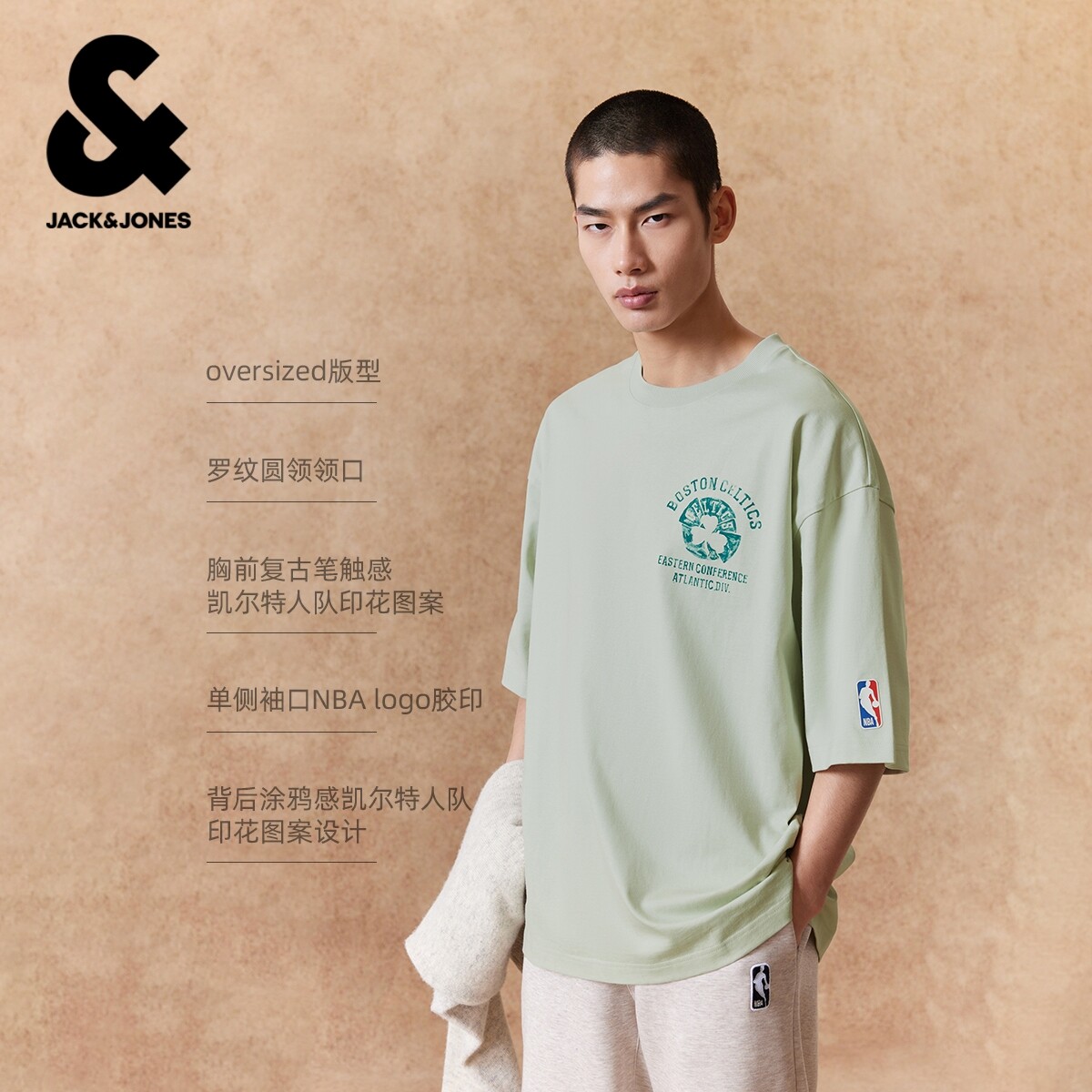 【NBA联名款凯尔特人队】杰克琼斯男装春季T恤复古印花廓形