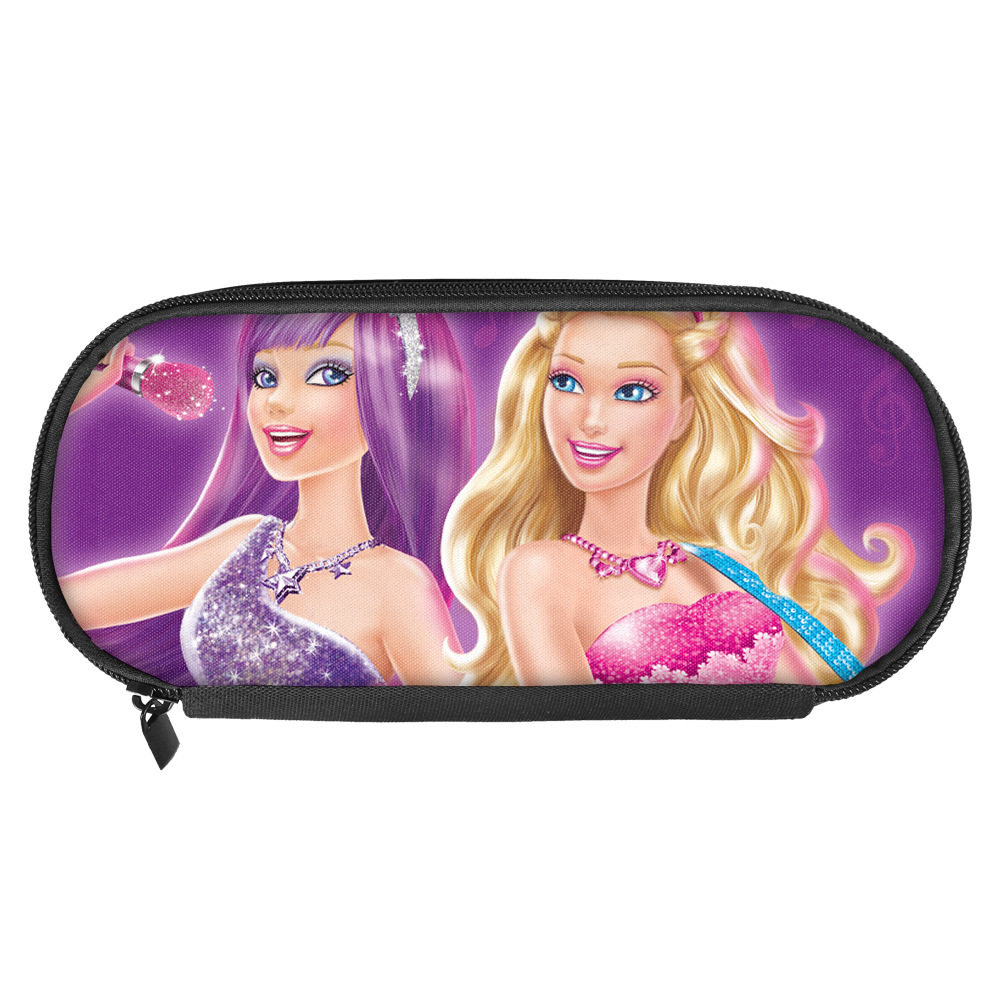 芭比barbie公主笔袋涤纶文具盒小学生卡通动漫翻盖大容量笔盒现货