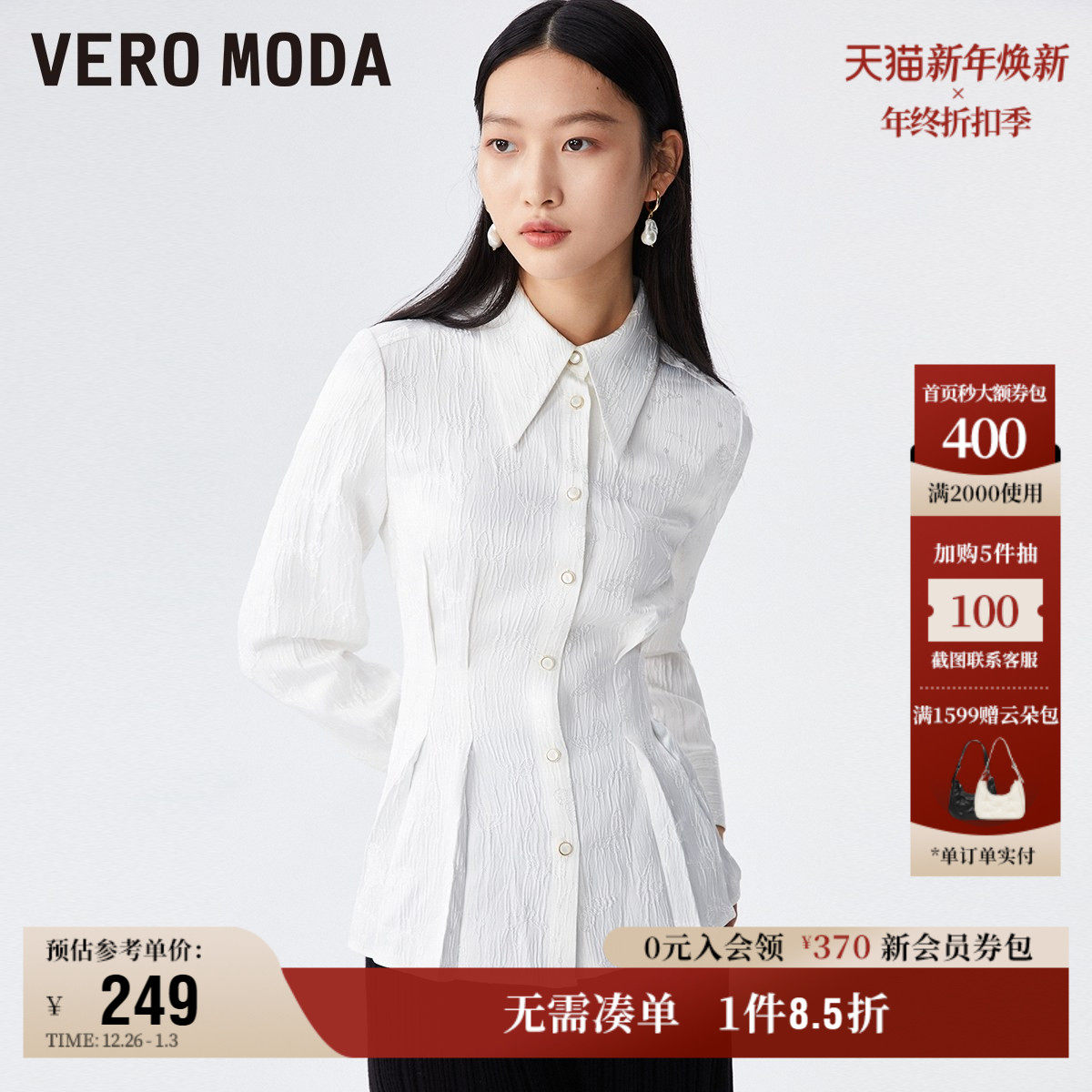 Vero Moda奥莱衬衫女秋季清仓优雅气质甜美简约通勤捏褶收腰上衣