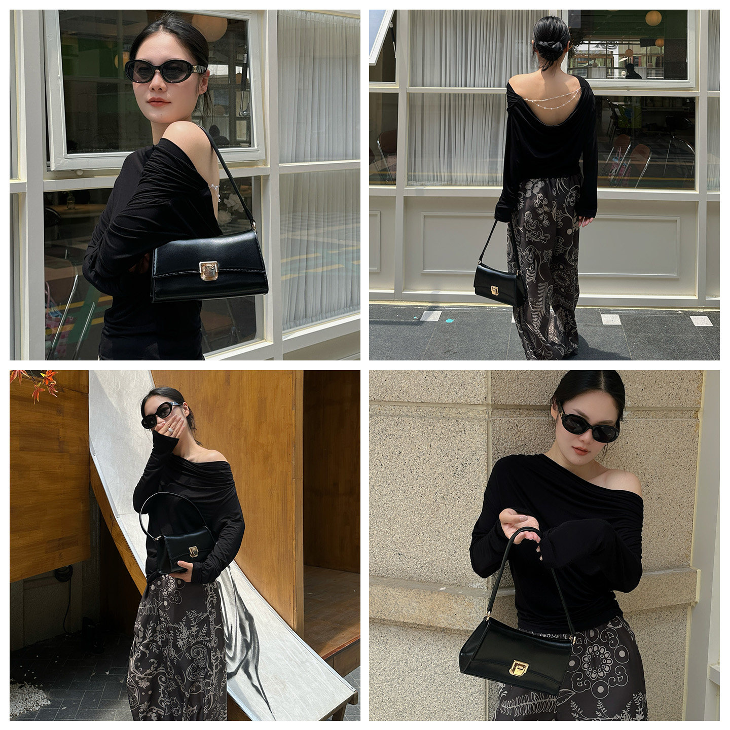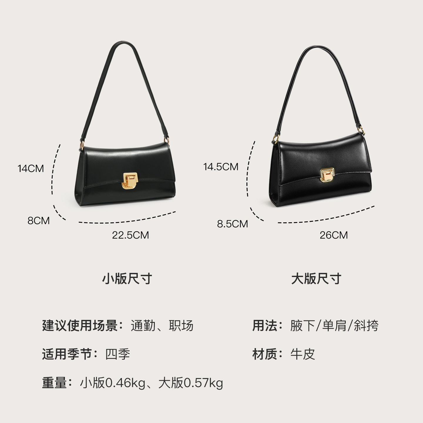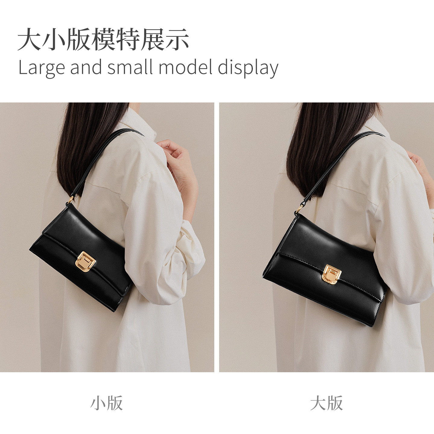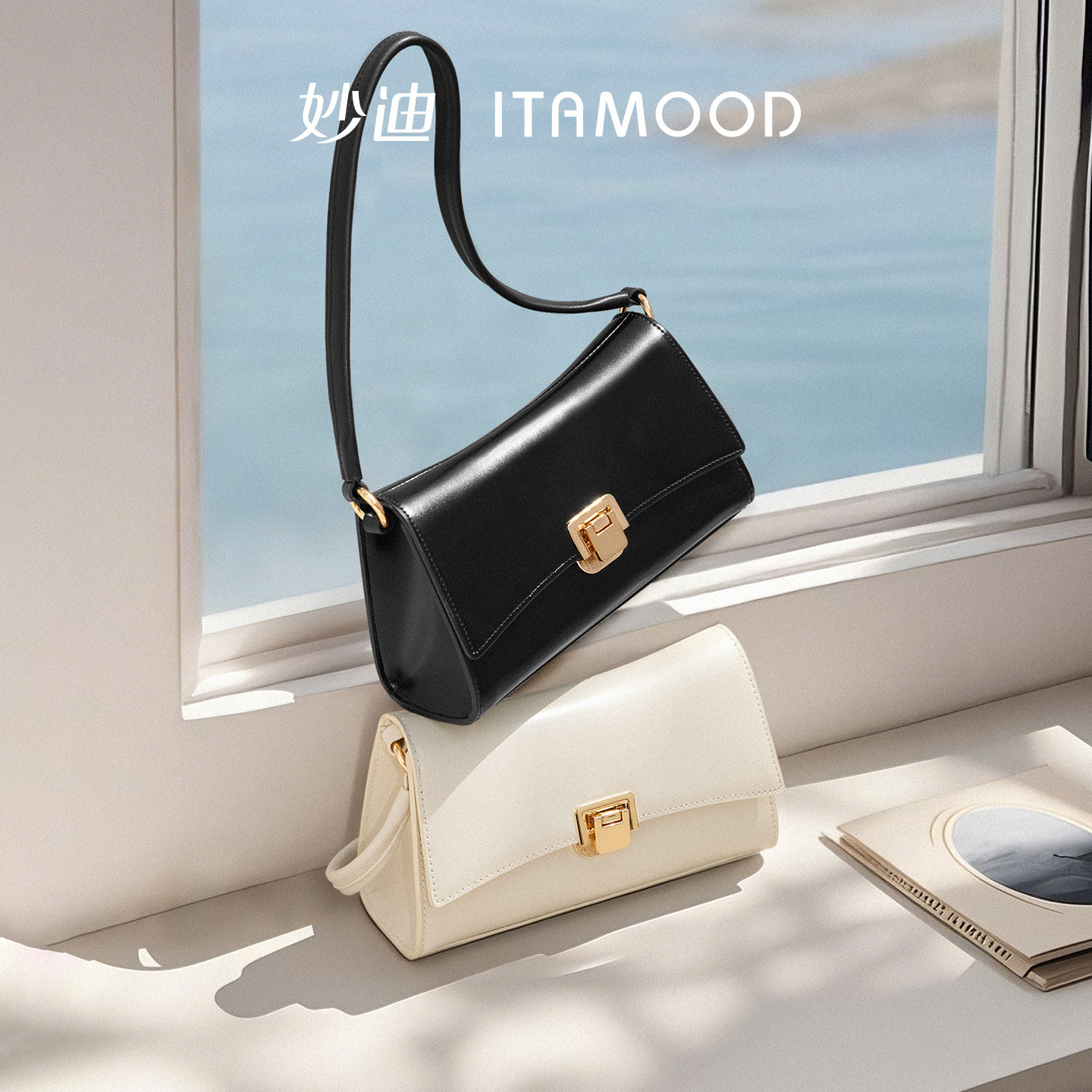 妙迪黑色法棍包包新款小众时尚牛皮腋下包职场通勤手拎袋斜挎包女