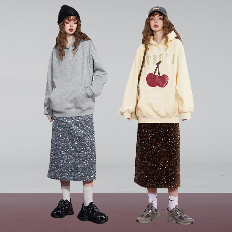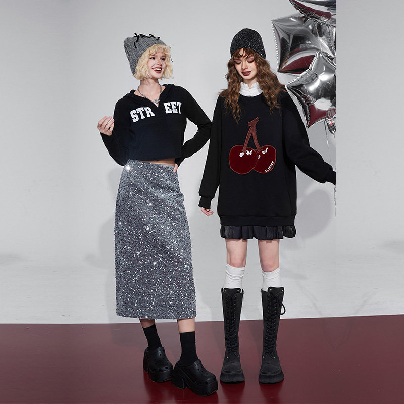 妖精的口袋亮片丝绒半身裙女2025冬季新款设计感高腰a字半身裙子