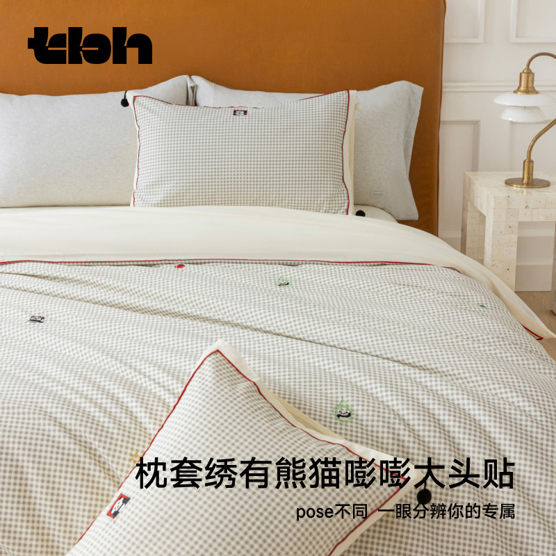 tbh野兽派家居全棉磨毛满绣床上四件套熊猫嘭嘭秋冬床上用品套件