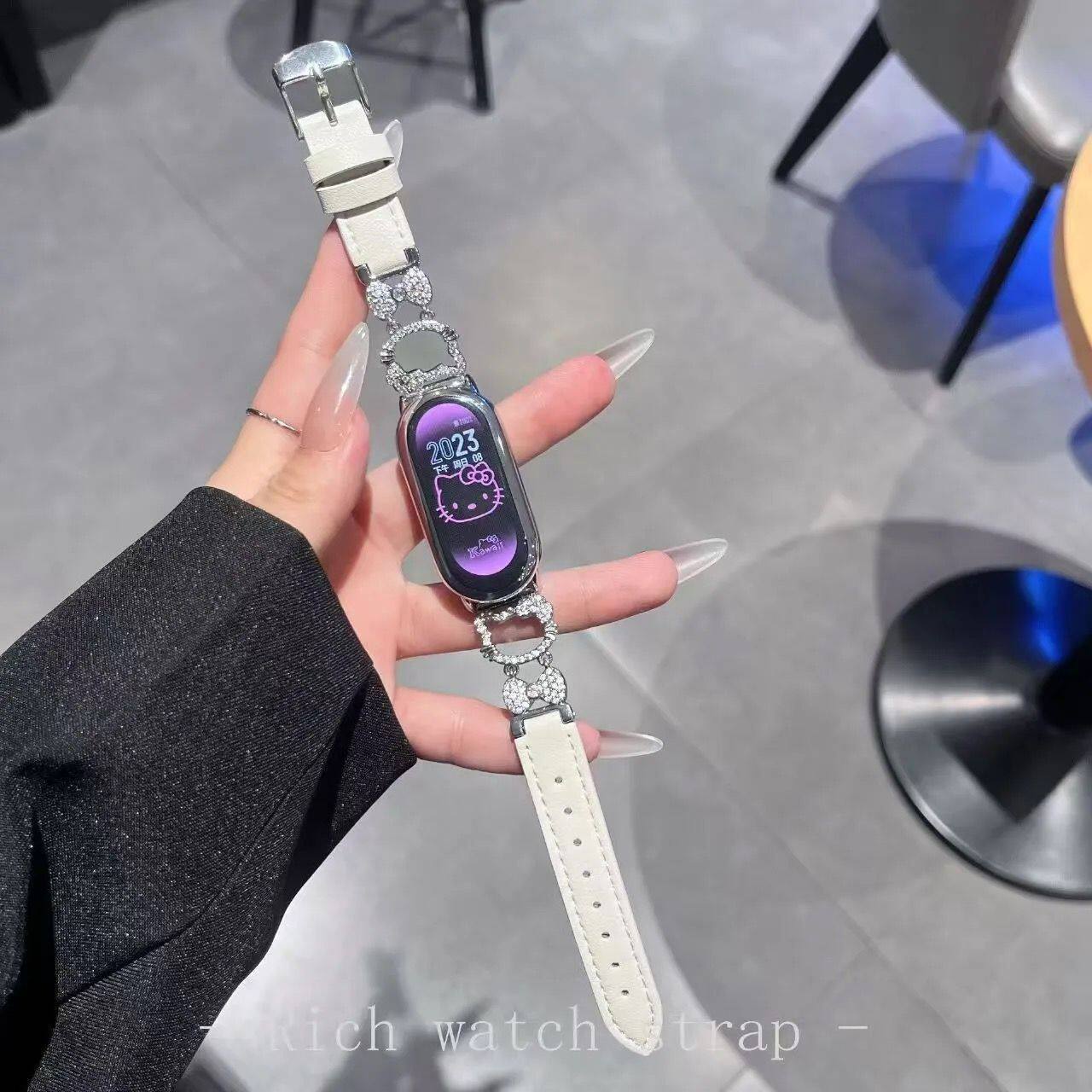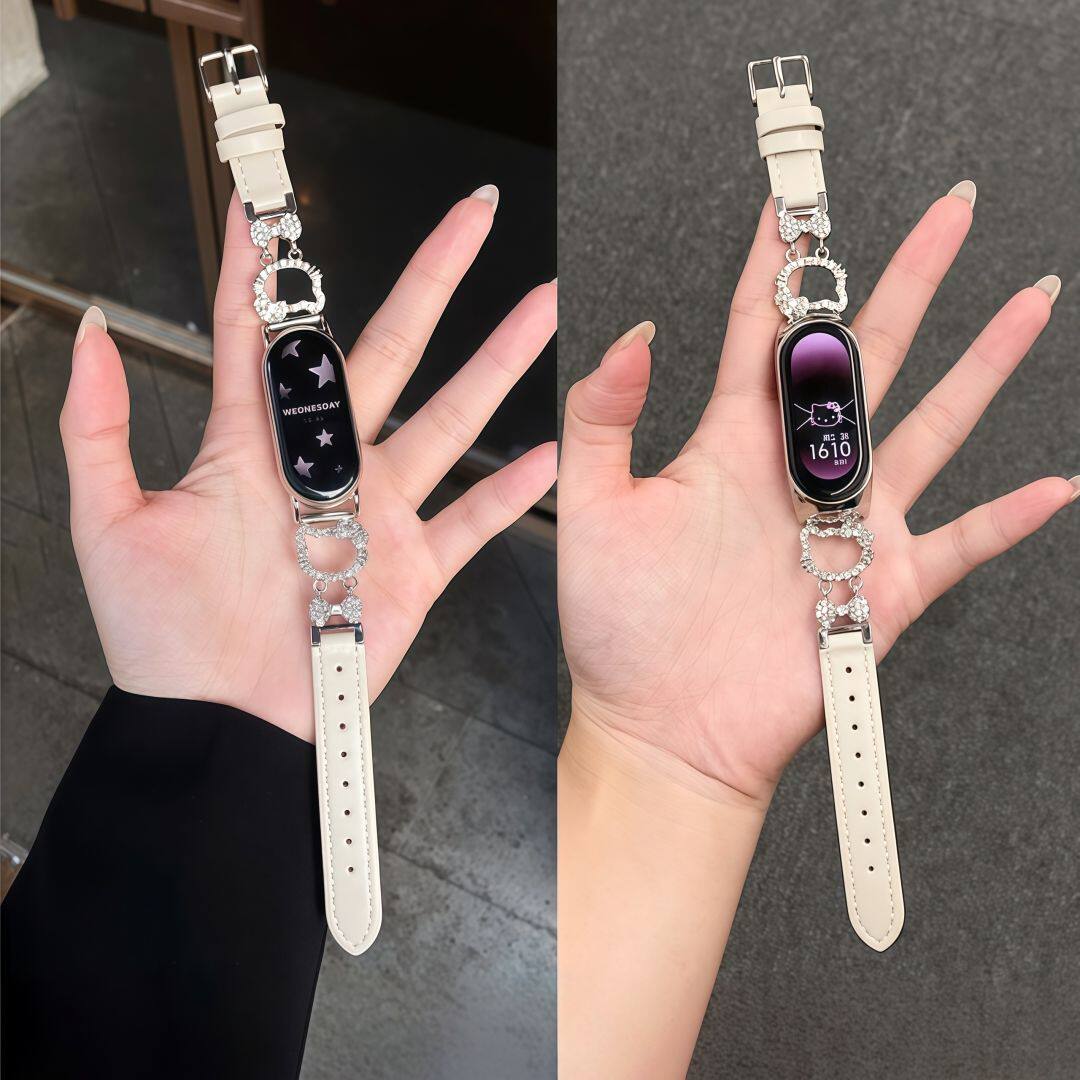 适用小米手环10陶瓷版98765NFC手表带闪钻KT猫可爱轻奢皮质腕带女