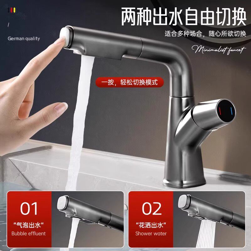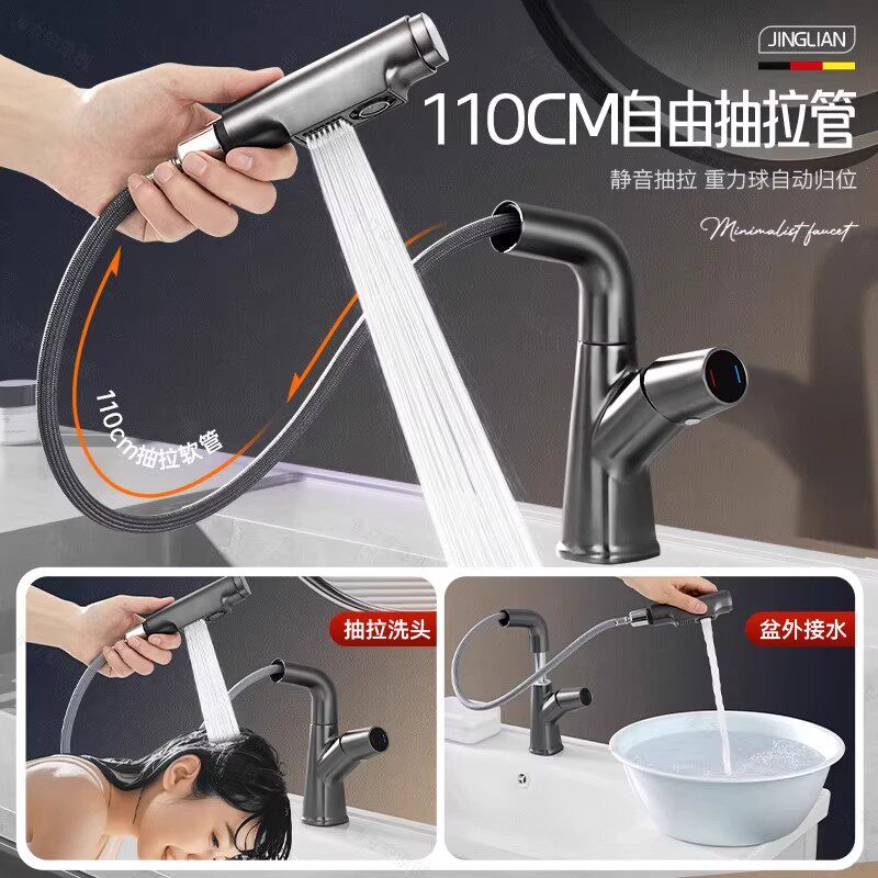 洗脸盆水龙头洗手盆抽拉冷热两用卫生间面盆浴室柜台盆家用全铜