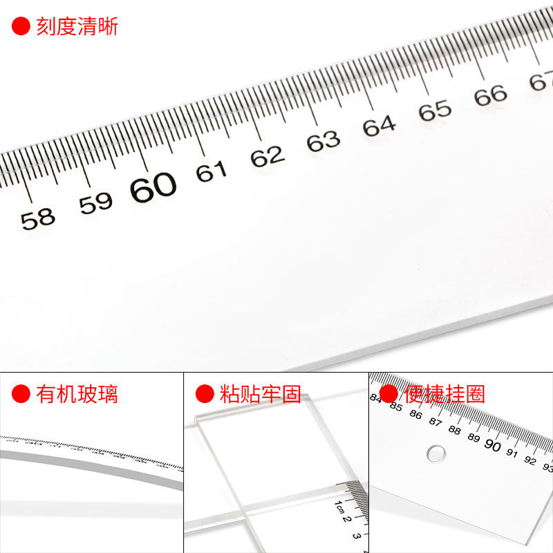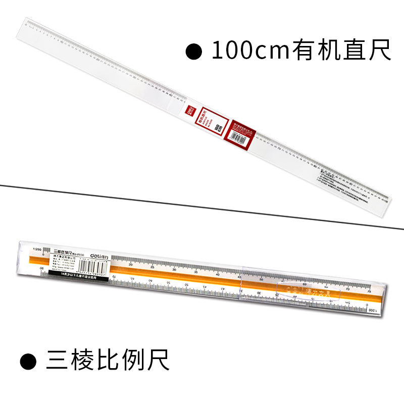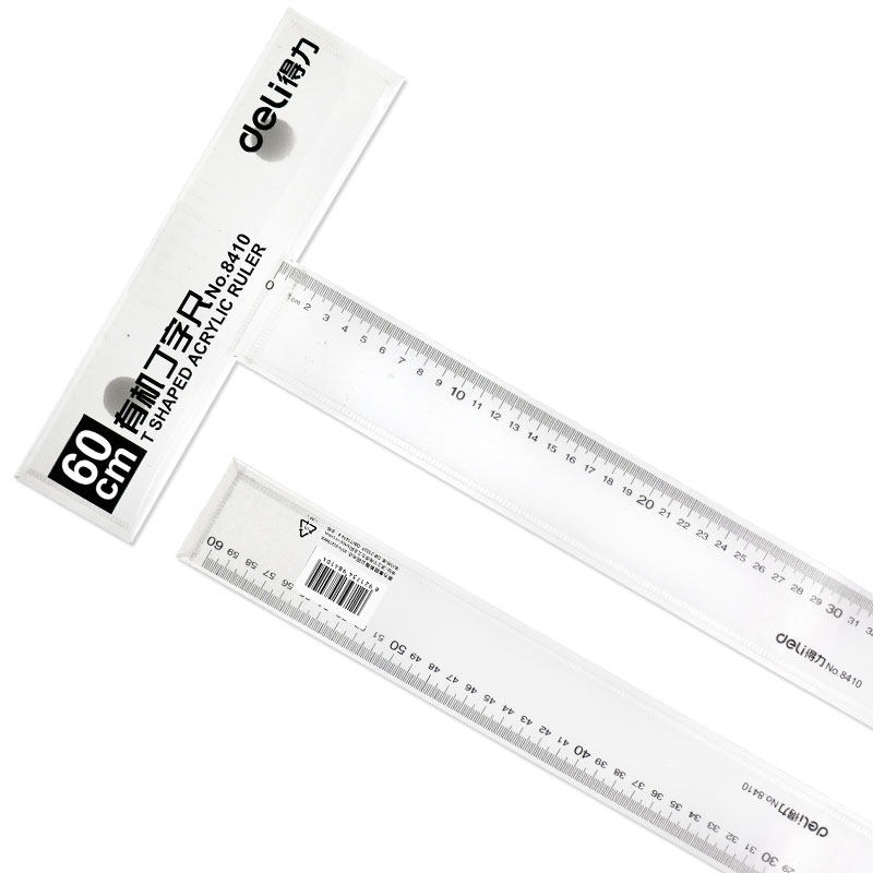得力有机玻璃绘图尺透明尺子塑料多功能图板60厘米一米机料丁字尺画板制图专用建筑工程直尺三棱尺T型尺