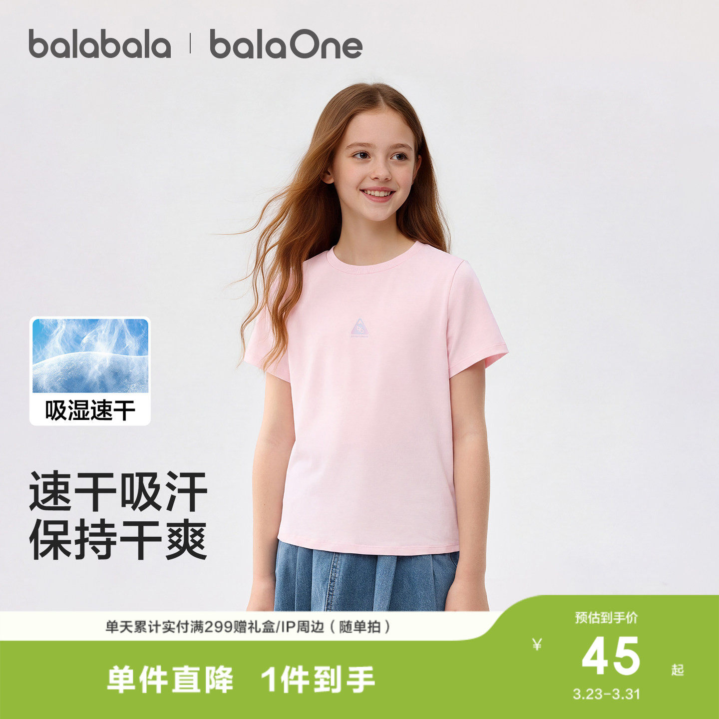 巴拉巴拉儿童短袖t恤女童2026夏新款童装亲肤舒适大童速干衣户外