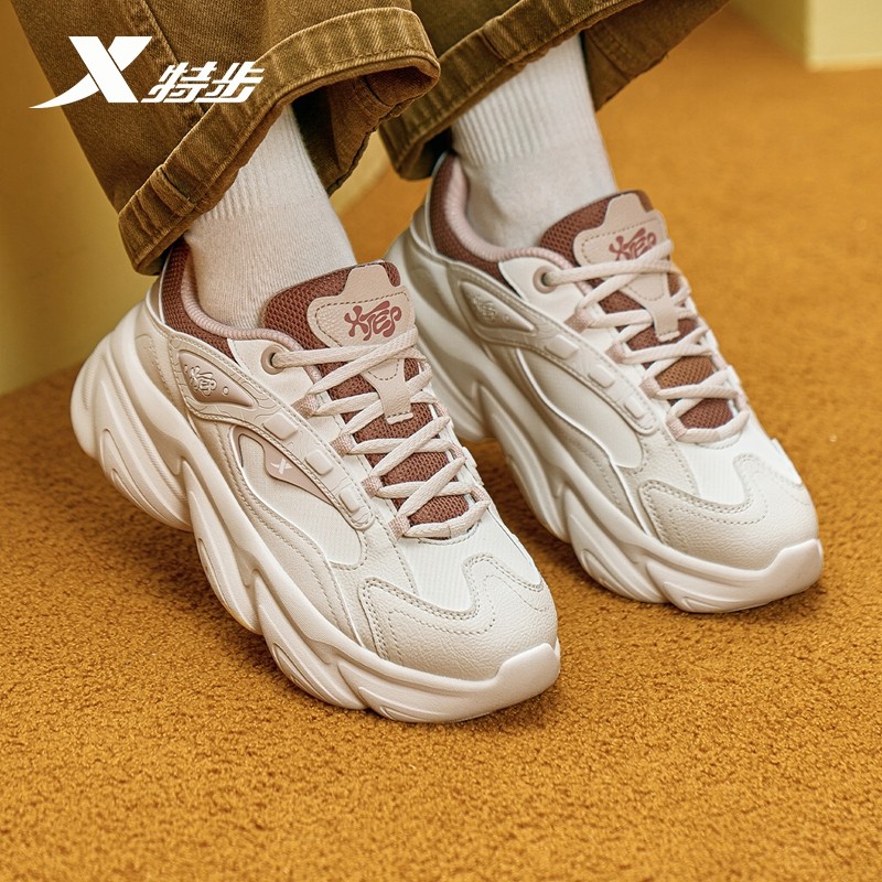 特步蛋卷鞋女鞋2025冬季厚底增高百搭休闲鞋复古老爹鞋轻便运动鞋